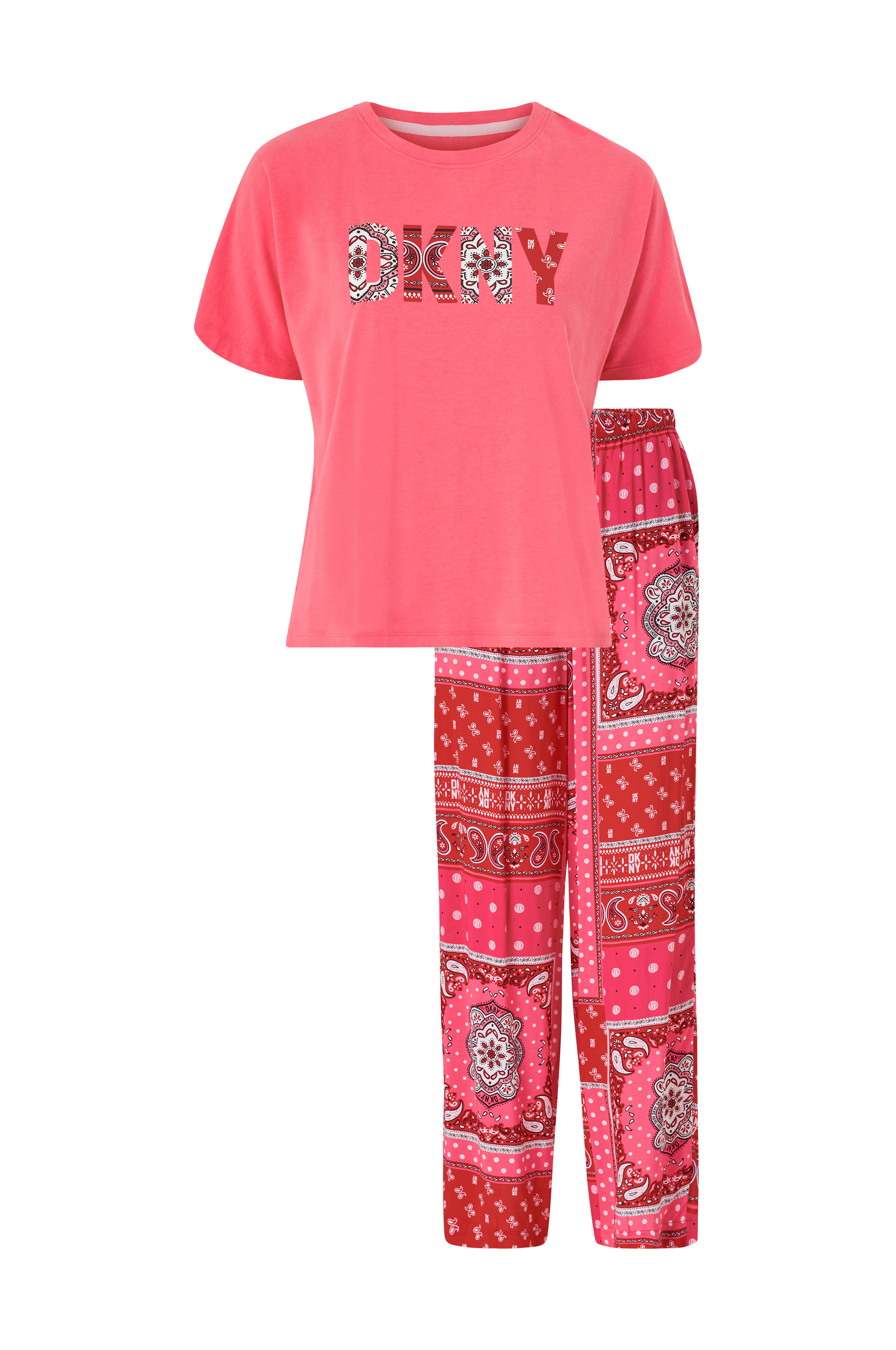 • 2-delt sæt• Vævede, mønstrede bukser med træksnørre• T-shirt i blød jersey med et tryk