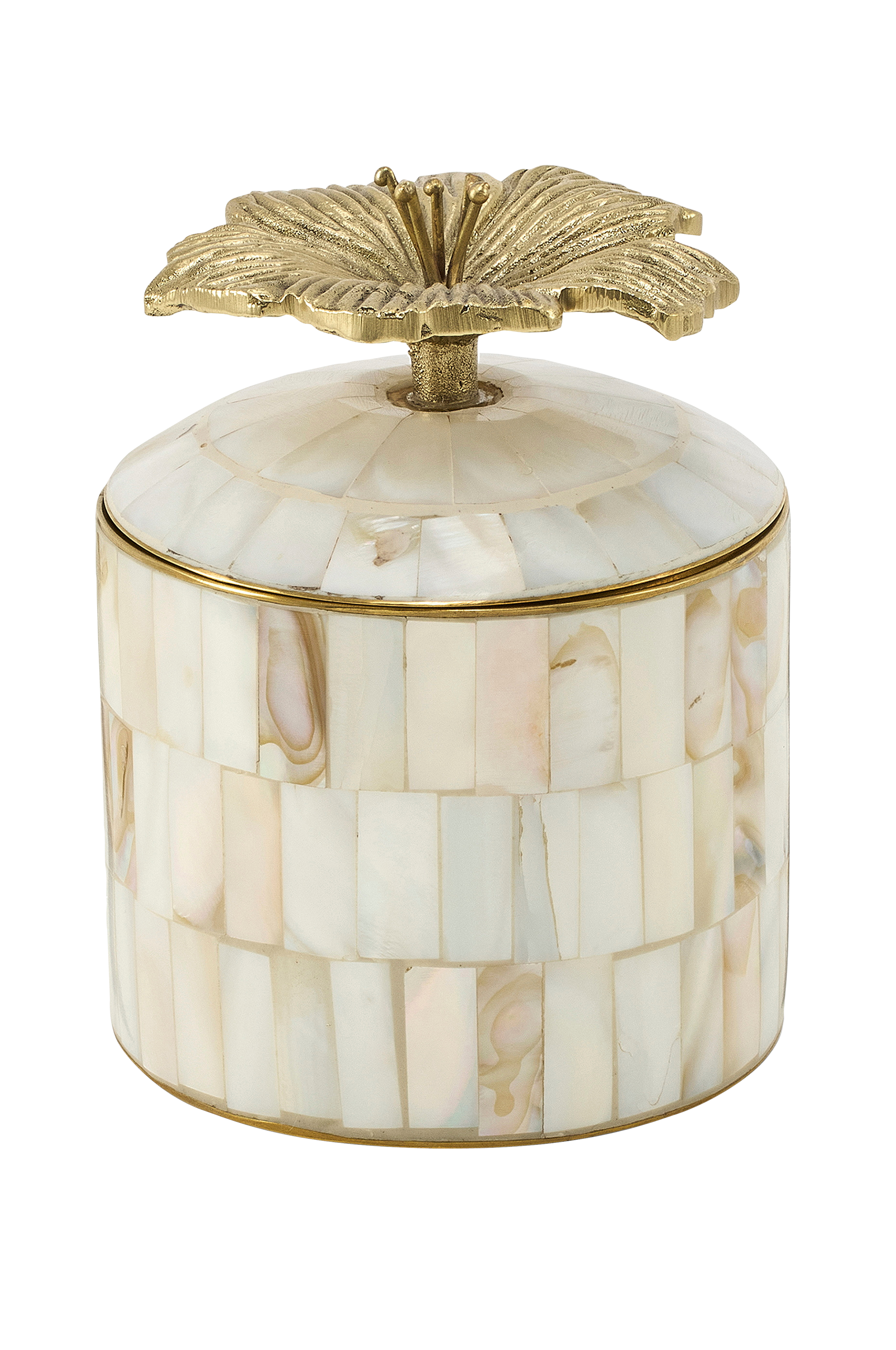 Du kan opbevare alle dine mest værdifulde skatte i denne Hailey Hibiscus Circus Box. Disse æsker er håndlavede i Indien af messing, harpiks og muslingeskaller. Når du køber dette håndlavede, unikke produkt, støtter du de lokalsamfund, hvor vores produkter fremstilles.