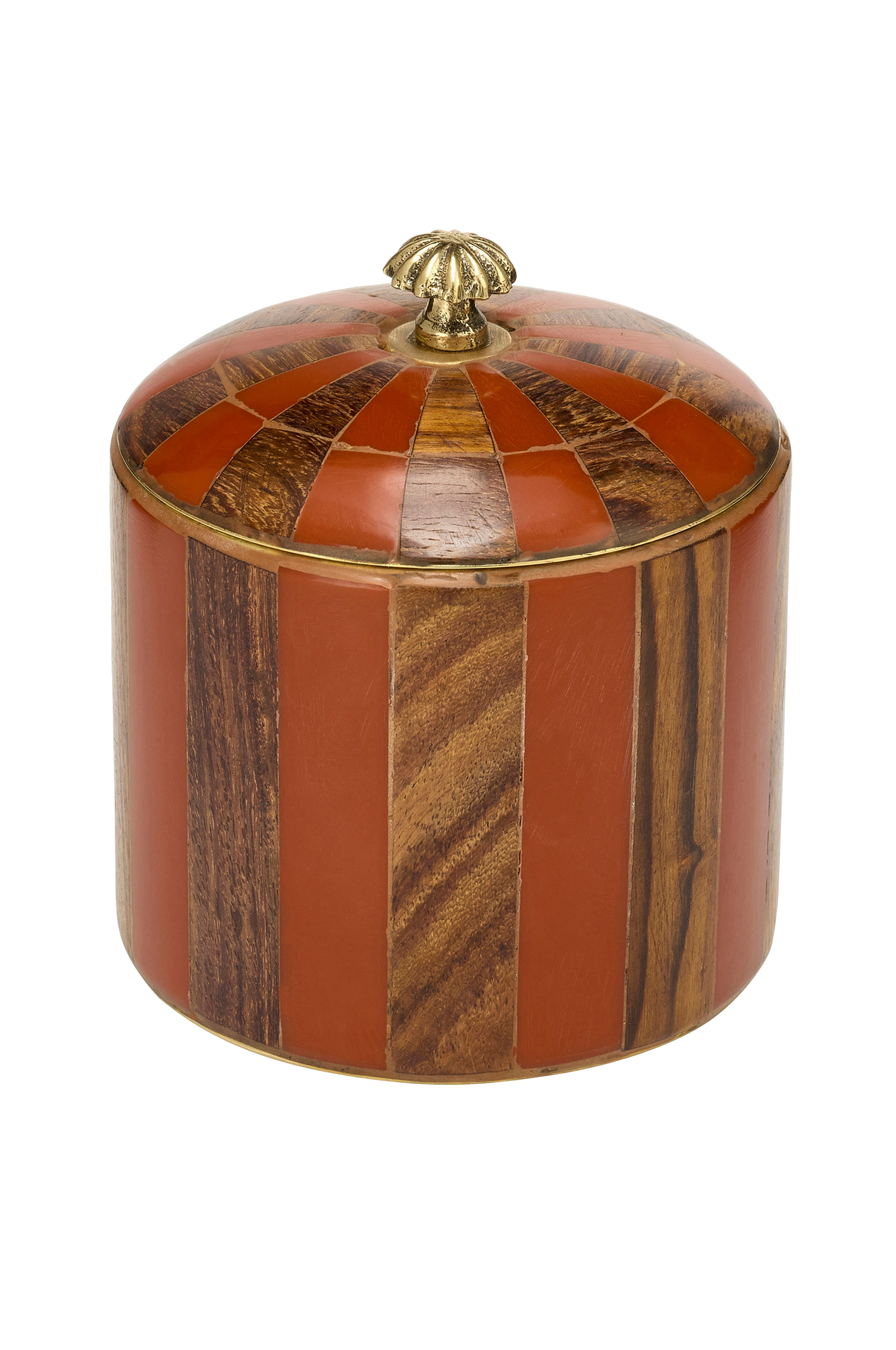 Vi præsenterer Piper Striped Circus Box - en finurlig tilføjelse til din samling af ting til hjemmet. Håndlavet med omhu af Doing Goods. Denne charmerende opbevaringsløsning er fremstillet af genbrugsmessing, træ og harpiks i Indien.