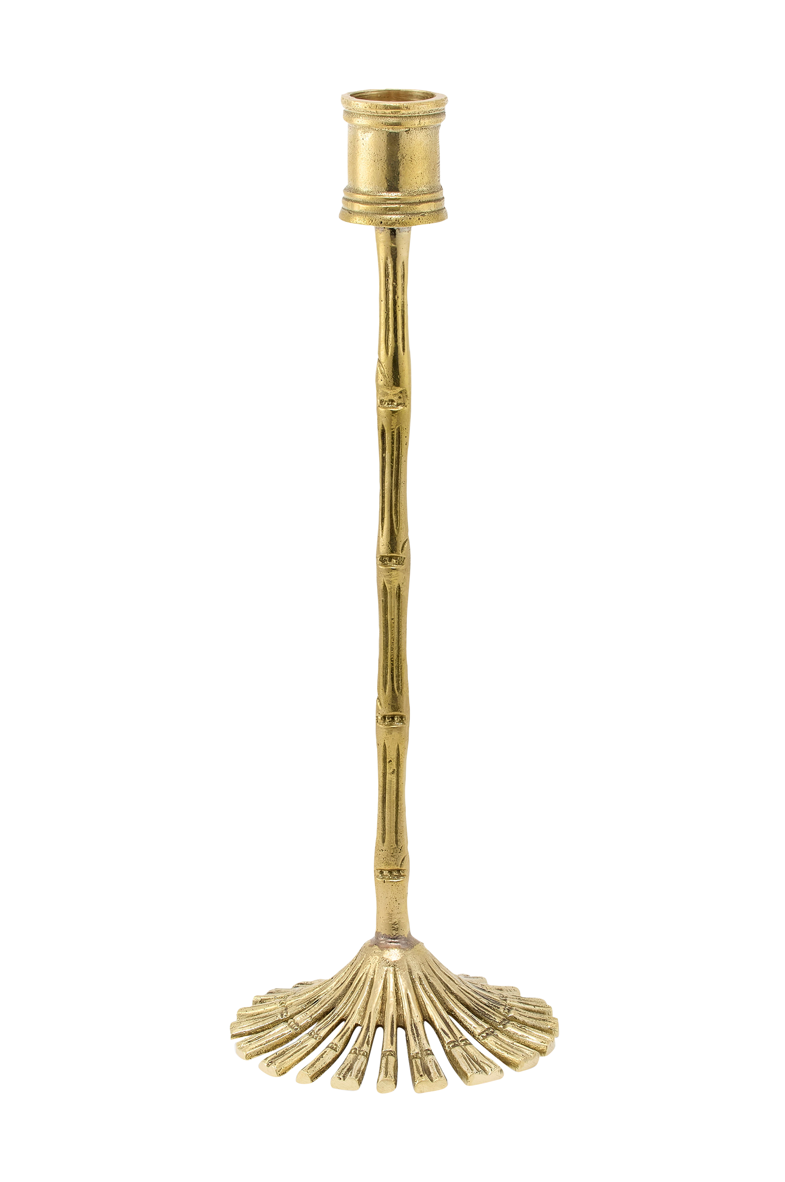 Giv din bolig et fredfyldt skær med Bamboo Candle Holder 26 cm. Denne større version er inspireret af bamboo's yndefulde linjer. Giver et hyggeligt skær, der forbedrer ethvert rum. Stagen er fremstillet af genbrugsmessing og afspejler traditionelt håndværk.
