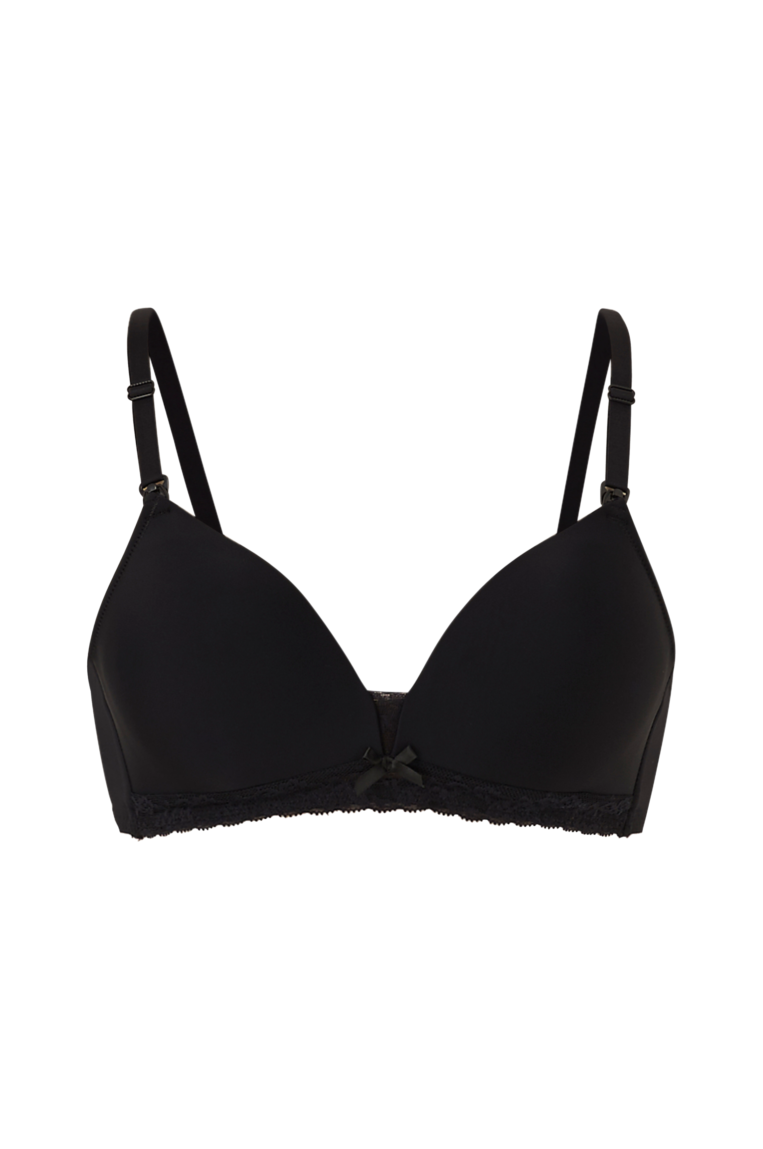 Amme-bh May fra Dorina med bløde, vatterede skåle og blondekant forneden. Skålene har et spænde ved skulderstropper så du kan åbne op og amme smidigt. Justerbare skulderstropper og hægte- og mallelukning bagpå.