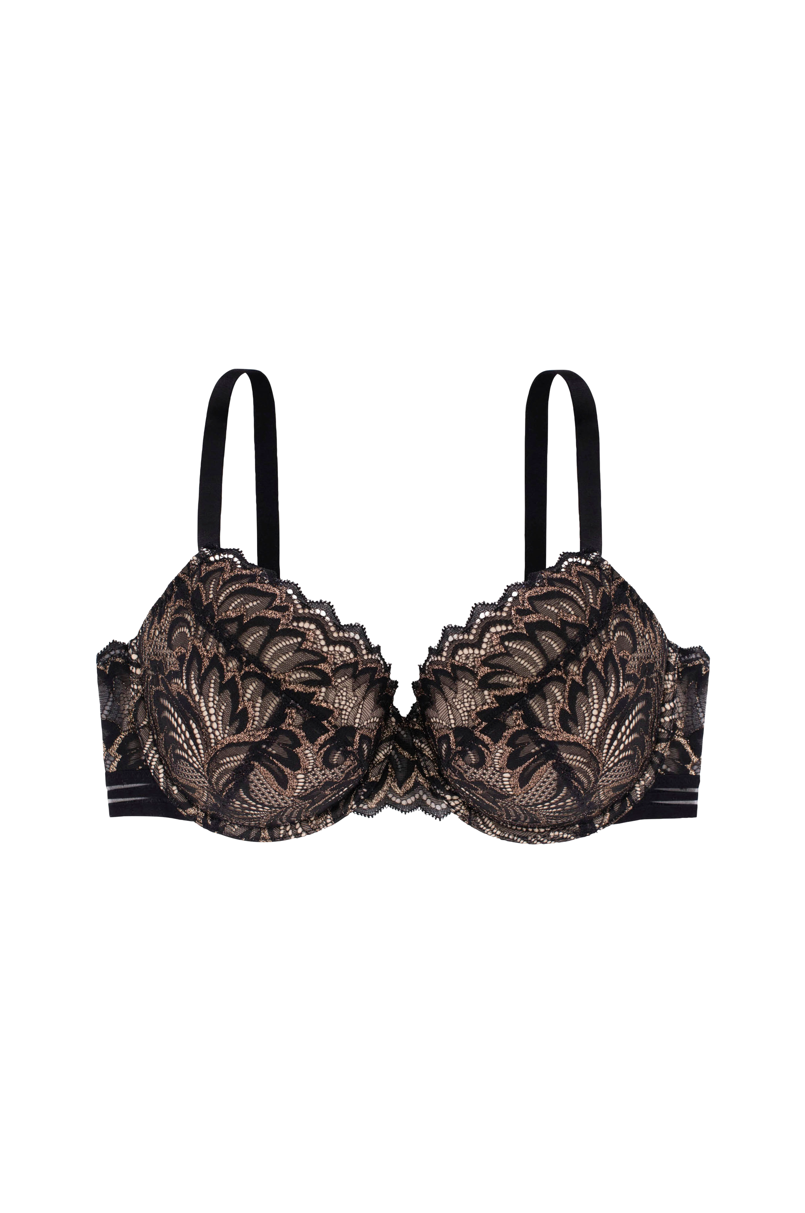 • Blondeklædte skåle• Støttende bøjle• Justérbare skulderstropper• Hægtelukning i ryggen