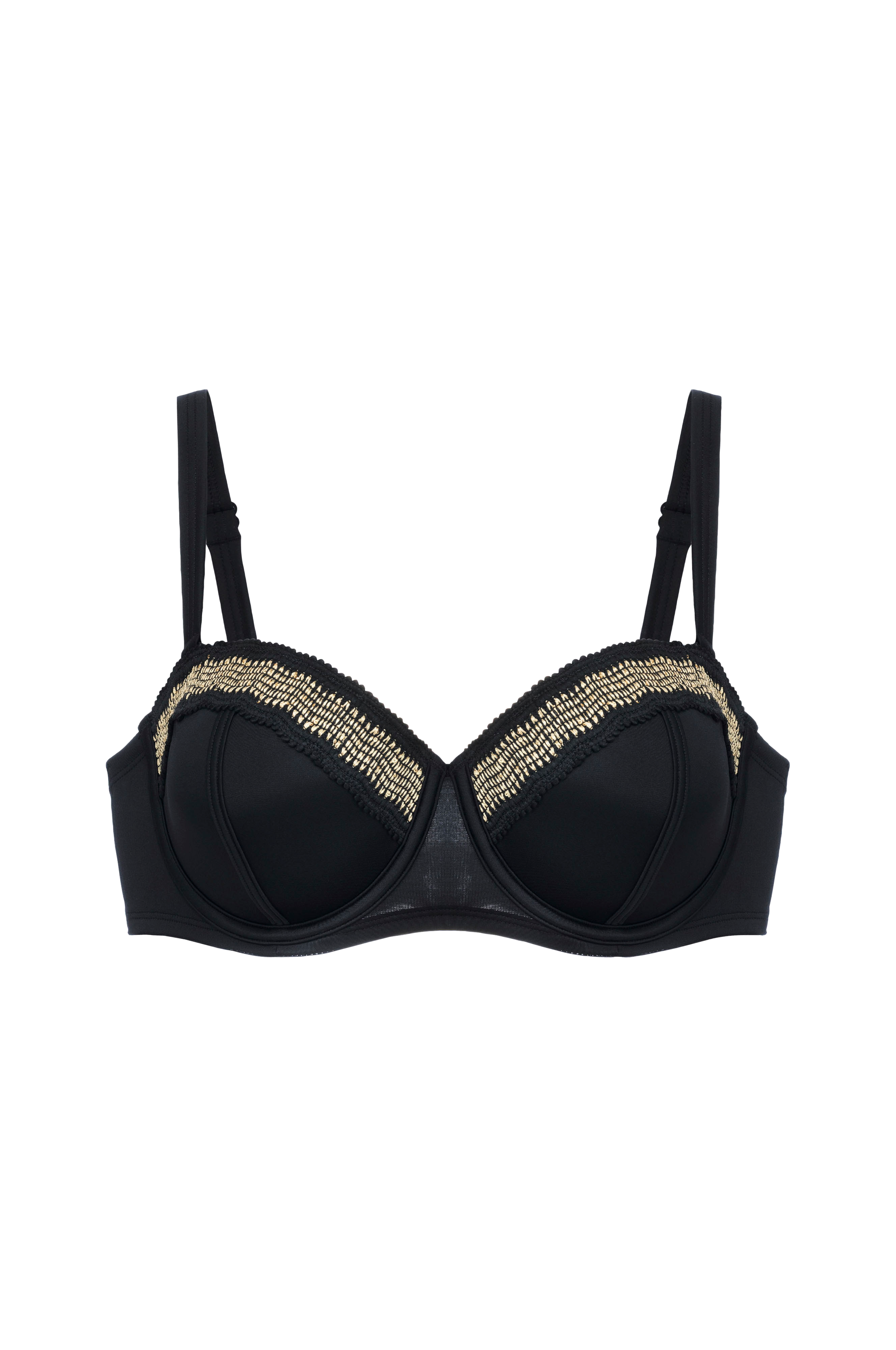 • Bandeau bikinioverdel• Tynd polstring• Støttende bøjle• Aftagelige, justérbare skulderstropper• Spænde i ryggen