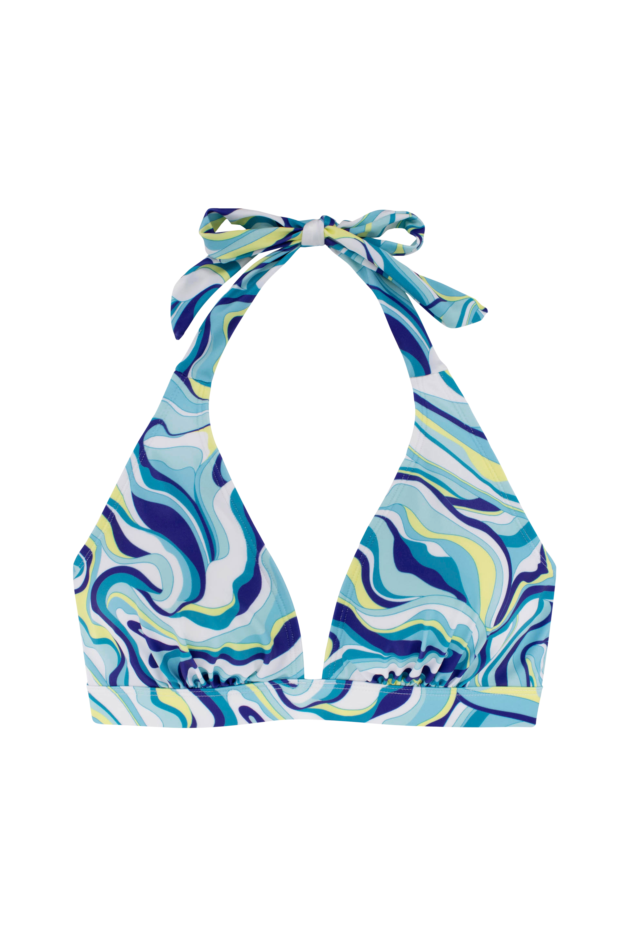 • Trekantede cups med aftagelig polstring • Snøringer i nakken • Plastikspænde i nakken • Produktet er certificeret i henhold til STANDARD 100 by OEKO-TEX®. Certificeringen garanterer, at produktet er testet og fri for stoffer, som kan være sundheds- og miljøskadelige. Licensnummer og testinstitut: HKUM 030975 TESTEX