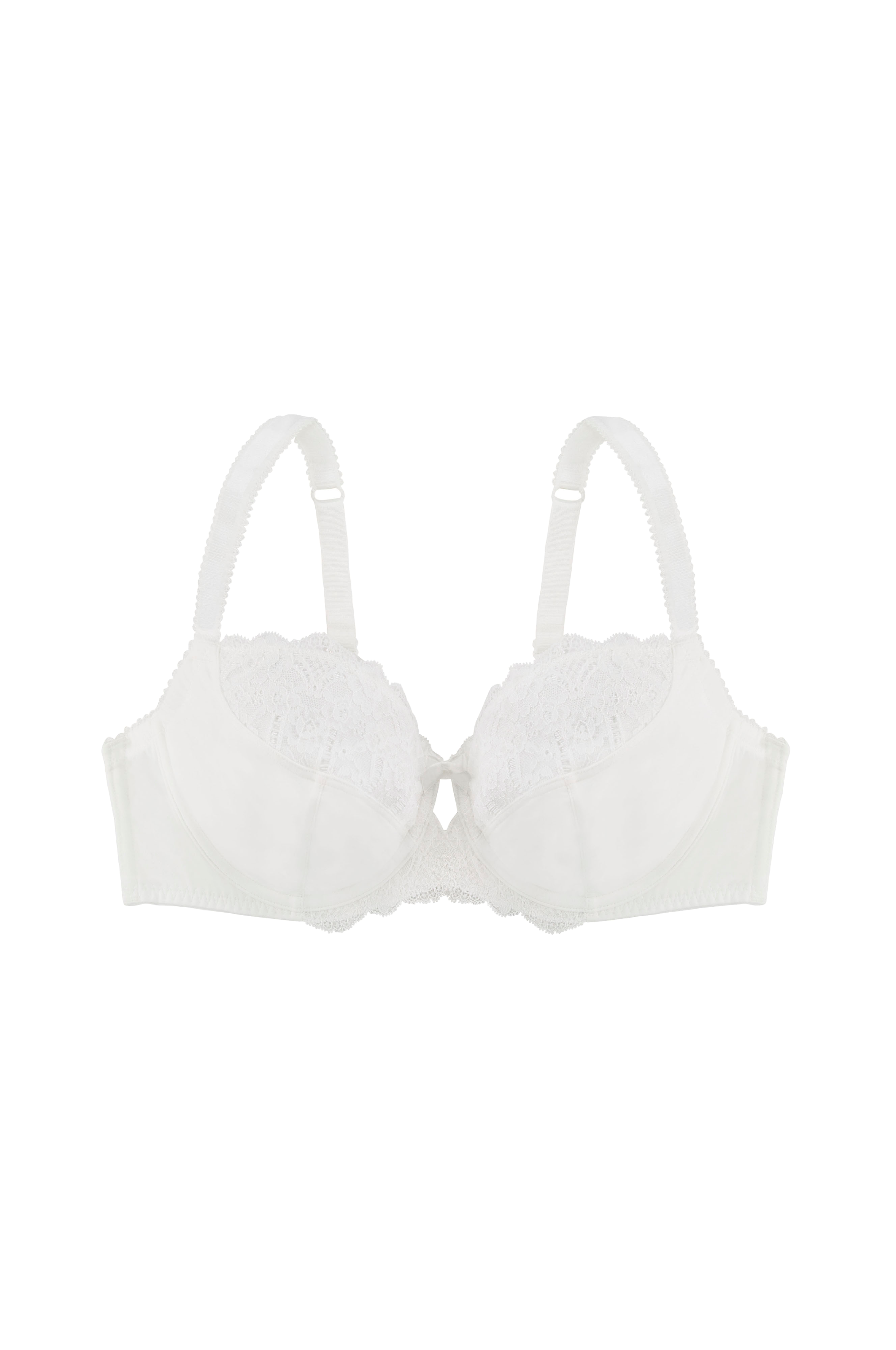 Bøjle-bh Celine fra Dorina med tredelt skål uden vattering. Ekstra meshfor langs skålenes yderside giver flot facon og god støtte. Åbning med sløjfe mellem skålene. Fremstillet i glansfuld stretchkvalitet med blonde foroven. Justerbare skulderstropper og hægte- og mallelukning bagpå.