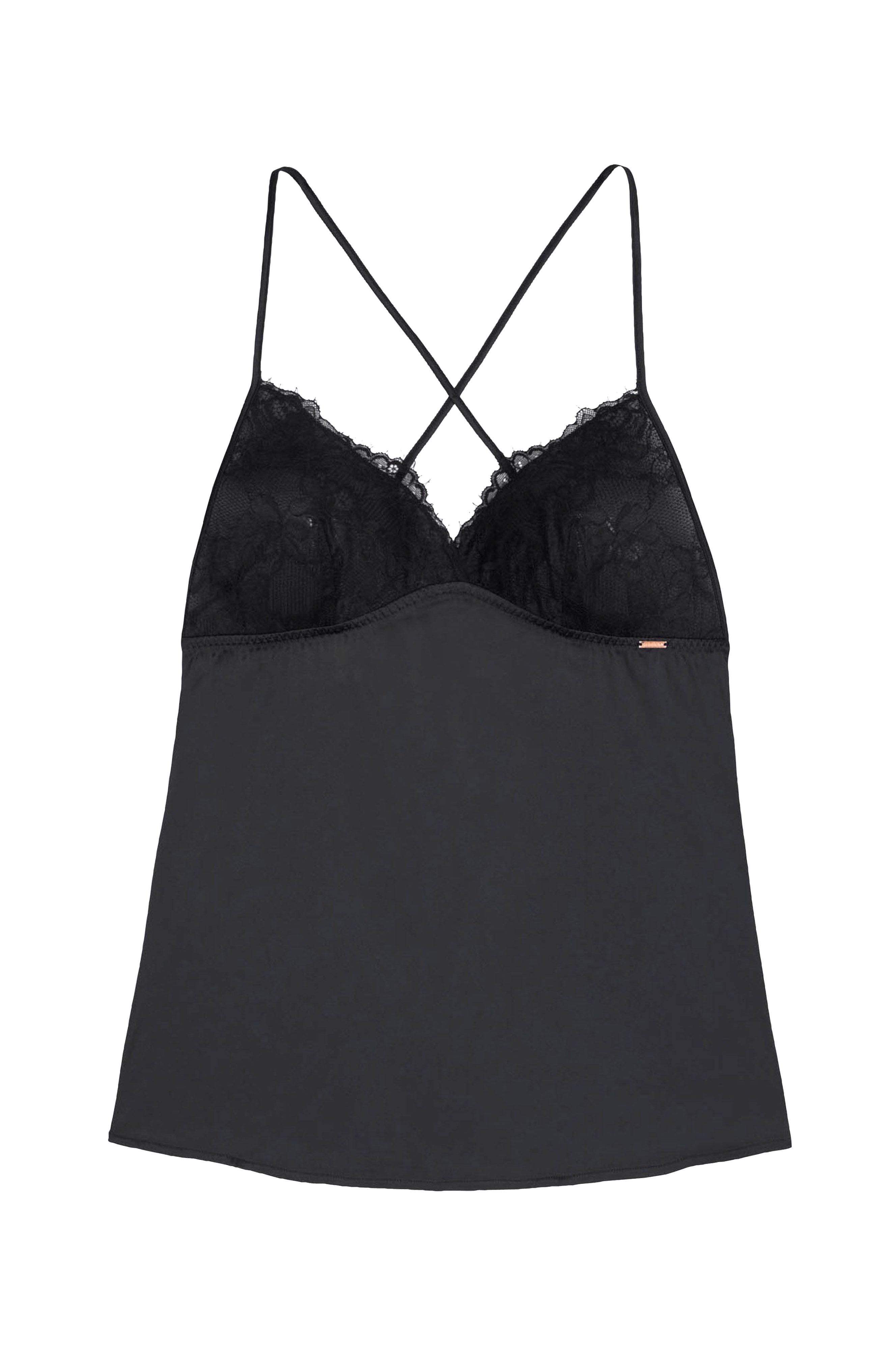 • Ærmeløs model med tynde, bindbare skulderstropper• Forede skåle i blonde