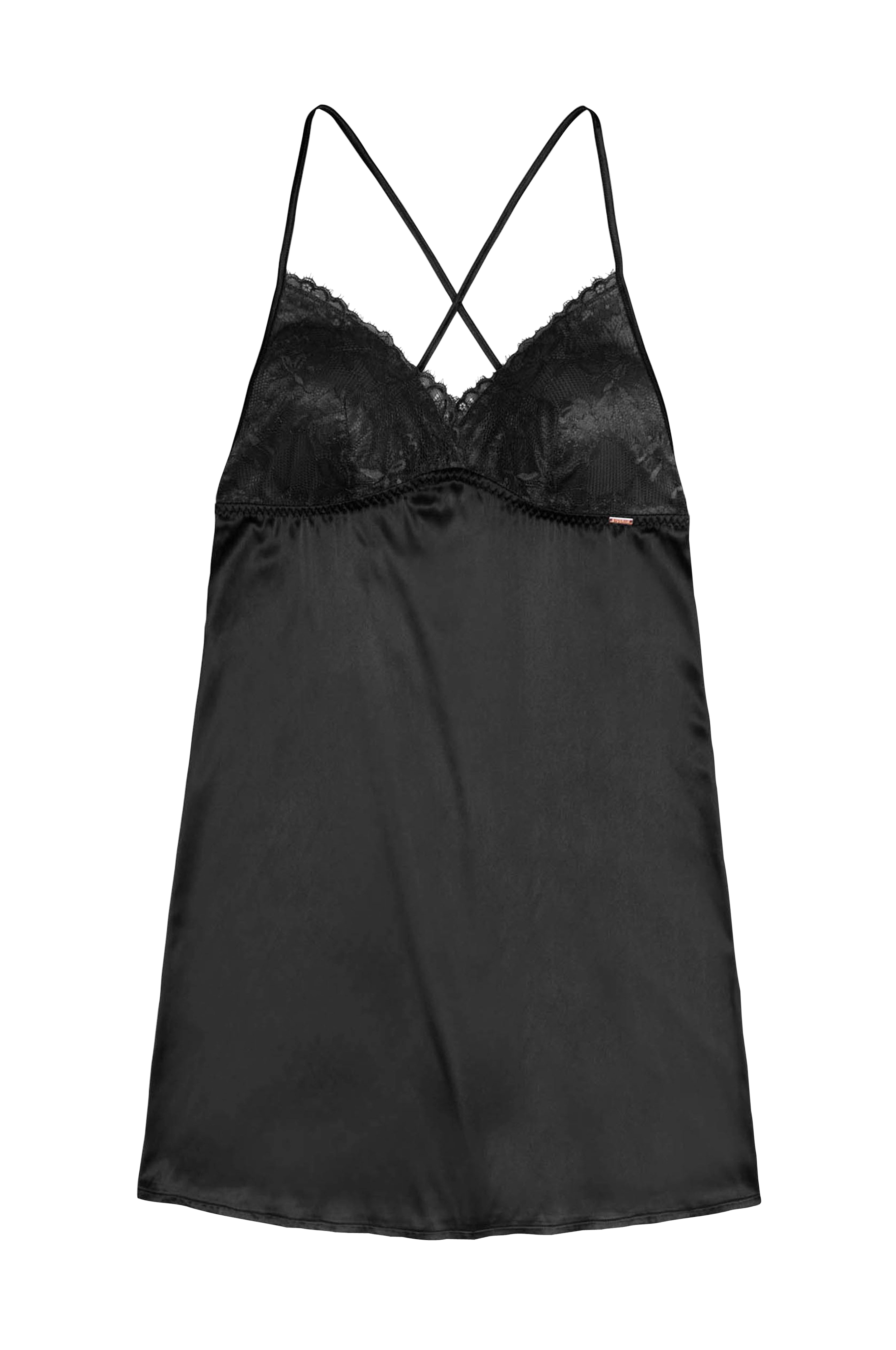 • Blondecups• Tynde, krydsende skulderstropper med bindbart bånd• Skinnende materiale
