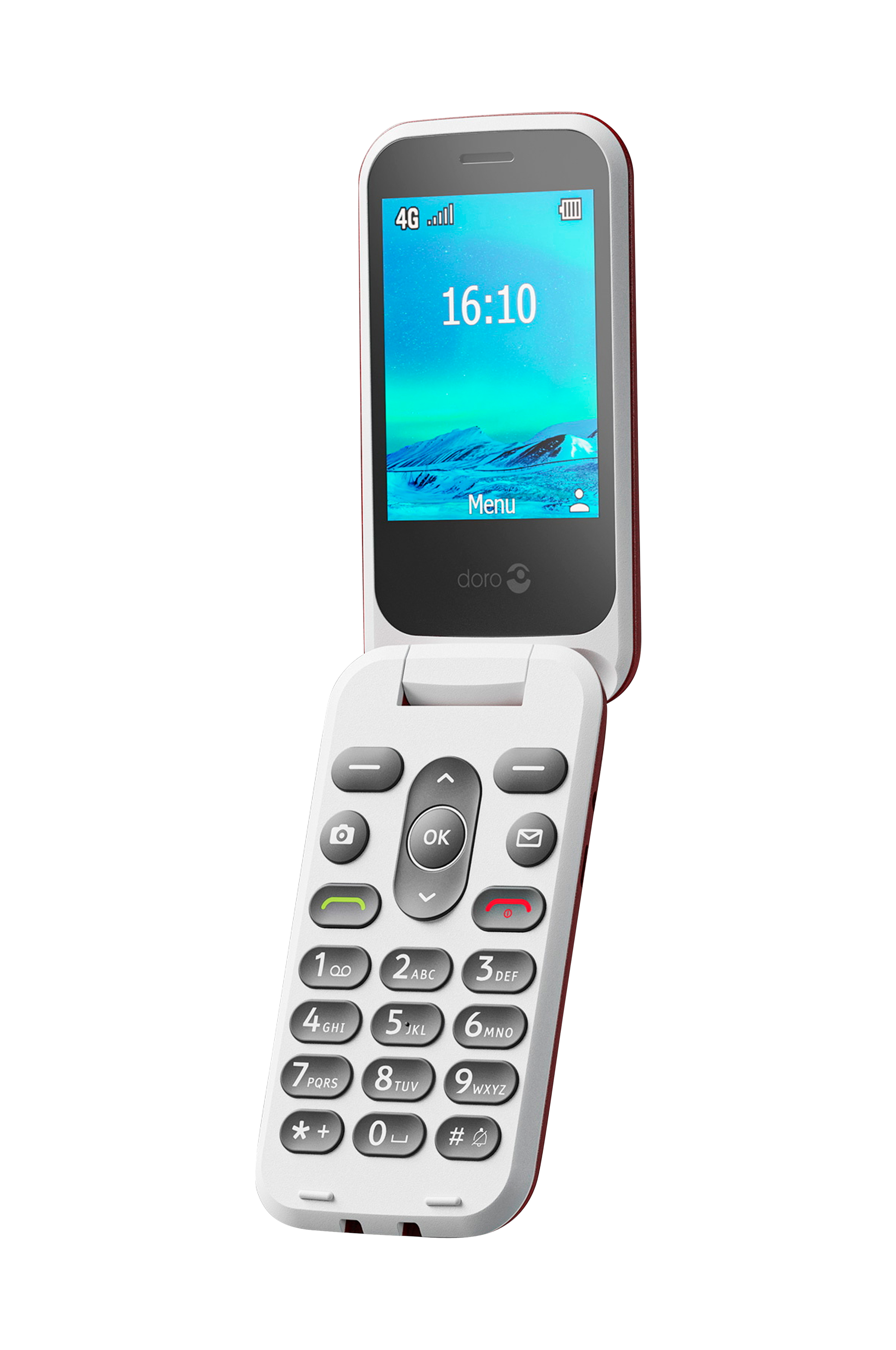 Brugervenlig 4G-mobiltelefon med stort display.Tastaturet har godt adskilte knapper, der gør det nemmere at ringe til telefonnumre og sende sms'er.Det foldbare design forhindrer utilsigtede tastetryk.