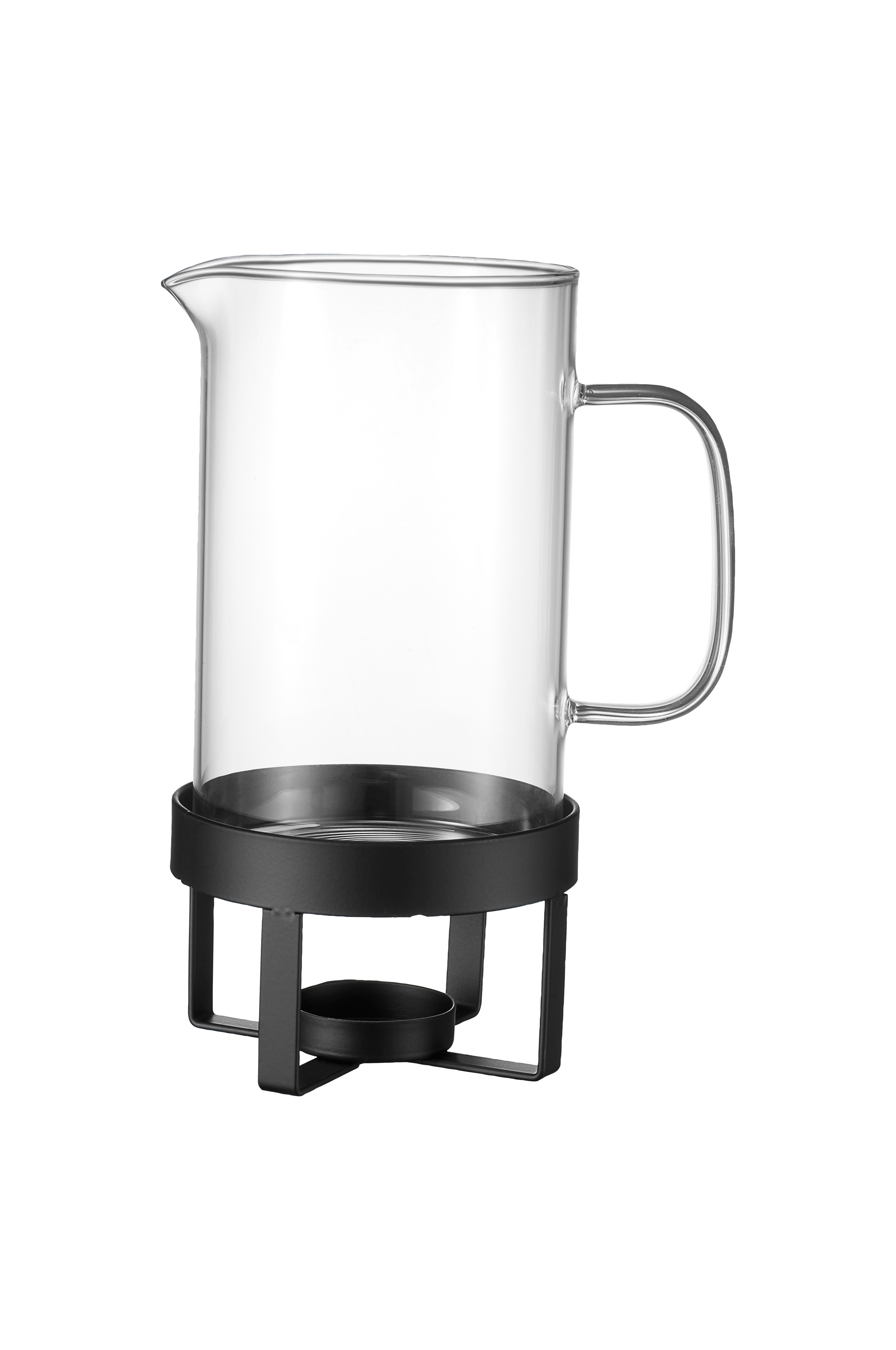 Gløggkedel glas ø9 h:20 cm sort smedejernsstativ volumen 1,2 l