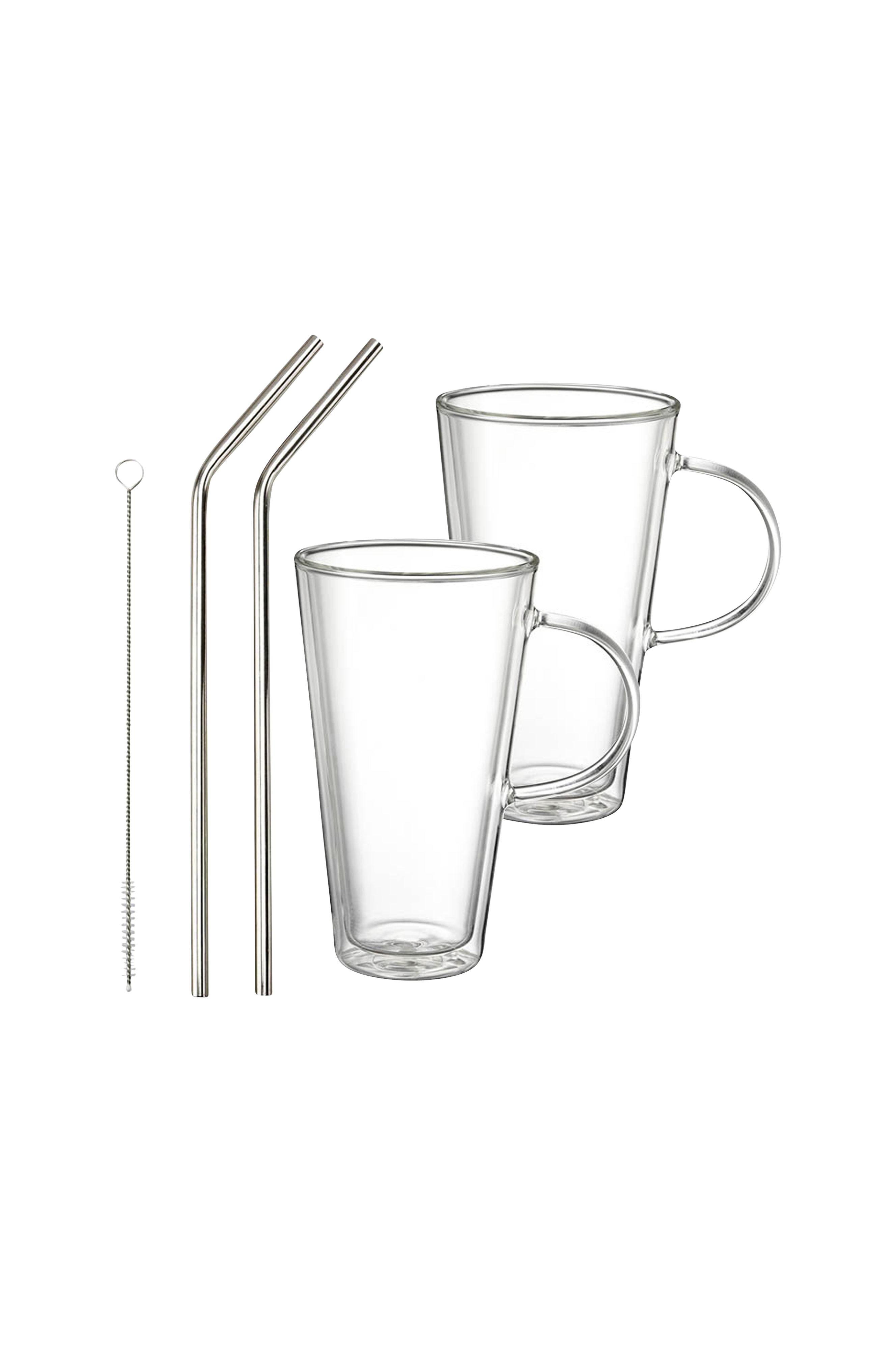 Ite Irish coffee-sæt 2-pak dobbeltvæggede glas med hank, tilhørende sugerør og børste 14,4x13,2x8,2