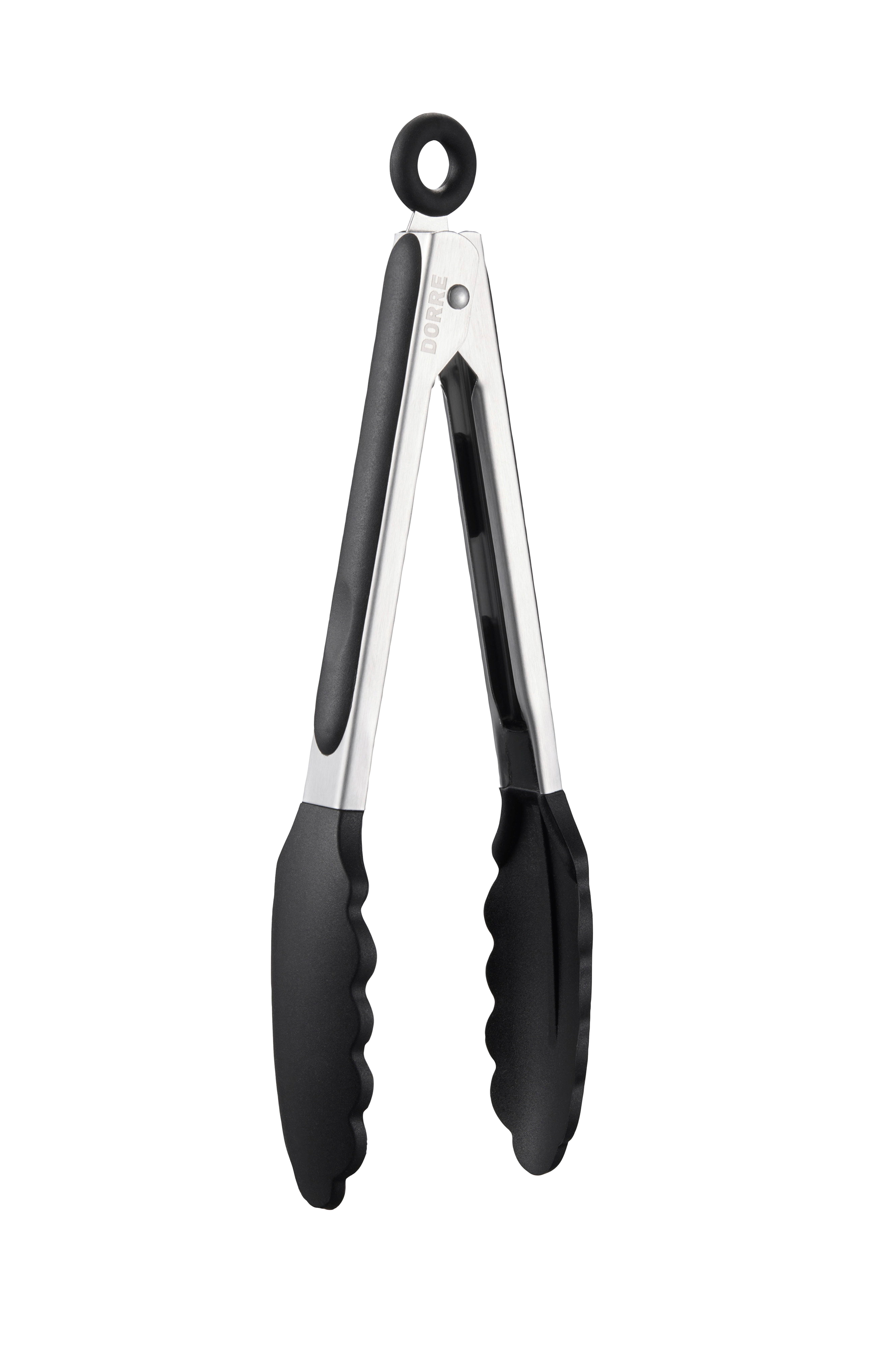 Køkkentang i rustfrit stål med sort silikonebeskyttelse, låsefunktion 23 cm