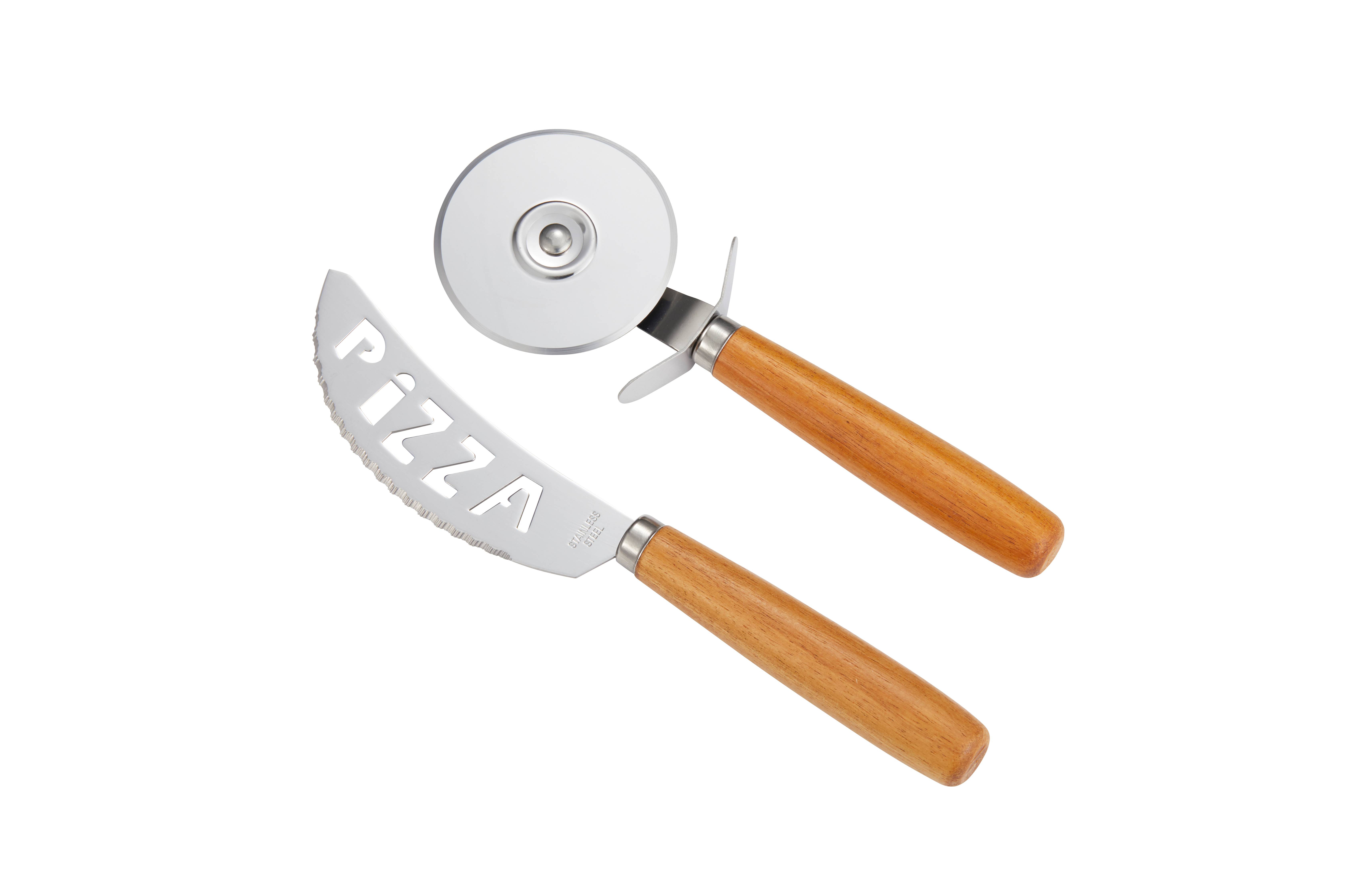 Pino Pizzasæt med kniv og skærer i rustfrit stål, skaft i akacietræ