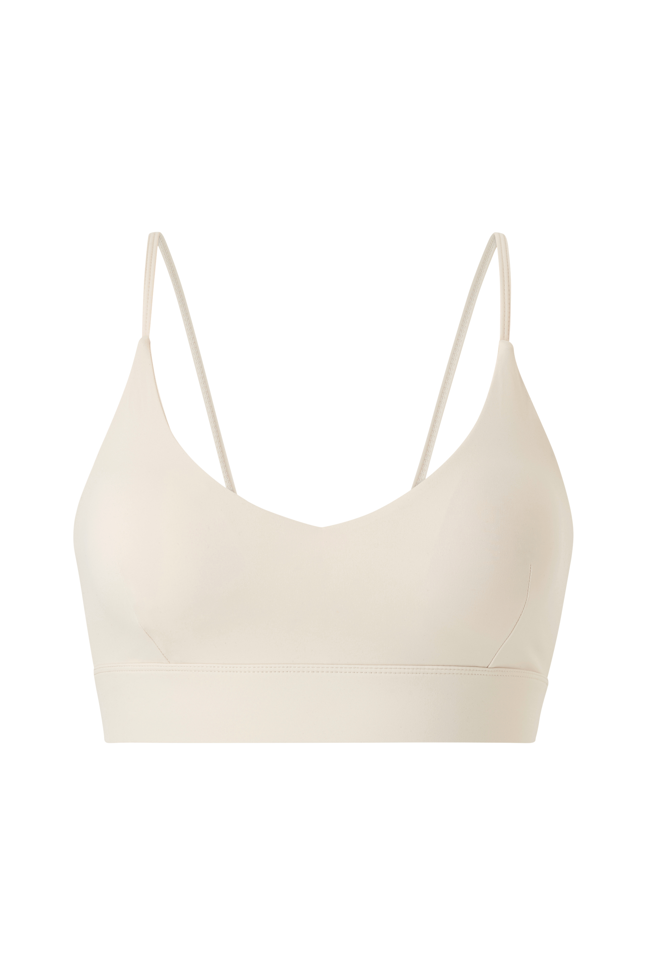 • Sports-bh i blød polyamid-blanding med firevejsstræk• V-formet udskæring• Skåle med aftagelig, let polstring• Medium support• Blød elastik nederst• Tynde skulderstropper med krydset, åbent design i ryggen