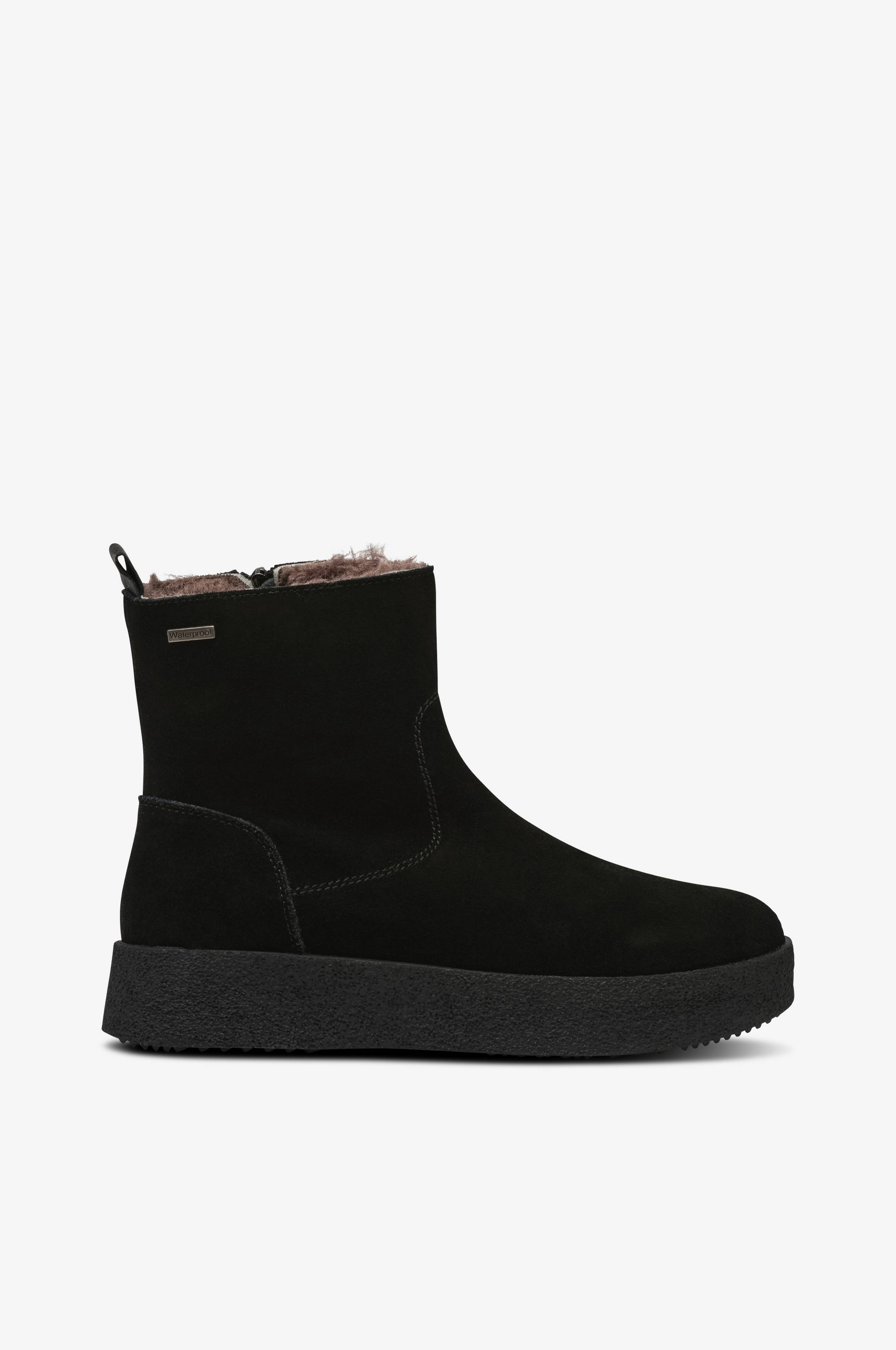 • Varmt forede, vandtætte boots i ruskind• Lynlåse på indersiden af skaftet• Trækstrop bagpå• Varmt for i kunstskind• Ydersål i gummi• Skafthøjde: 13 cm i str. 37