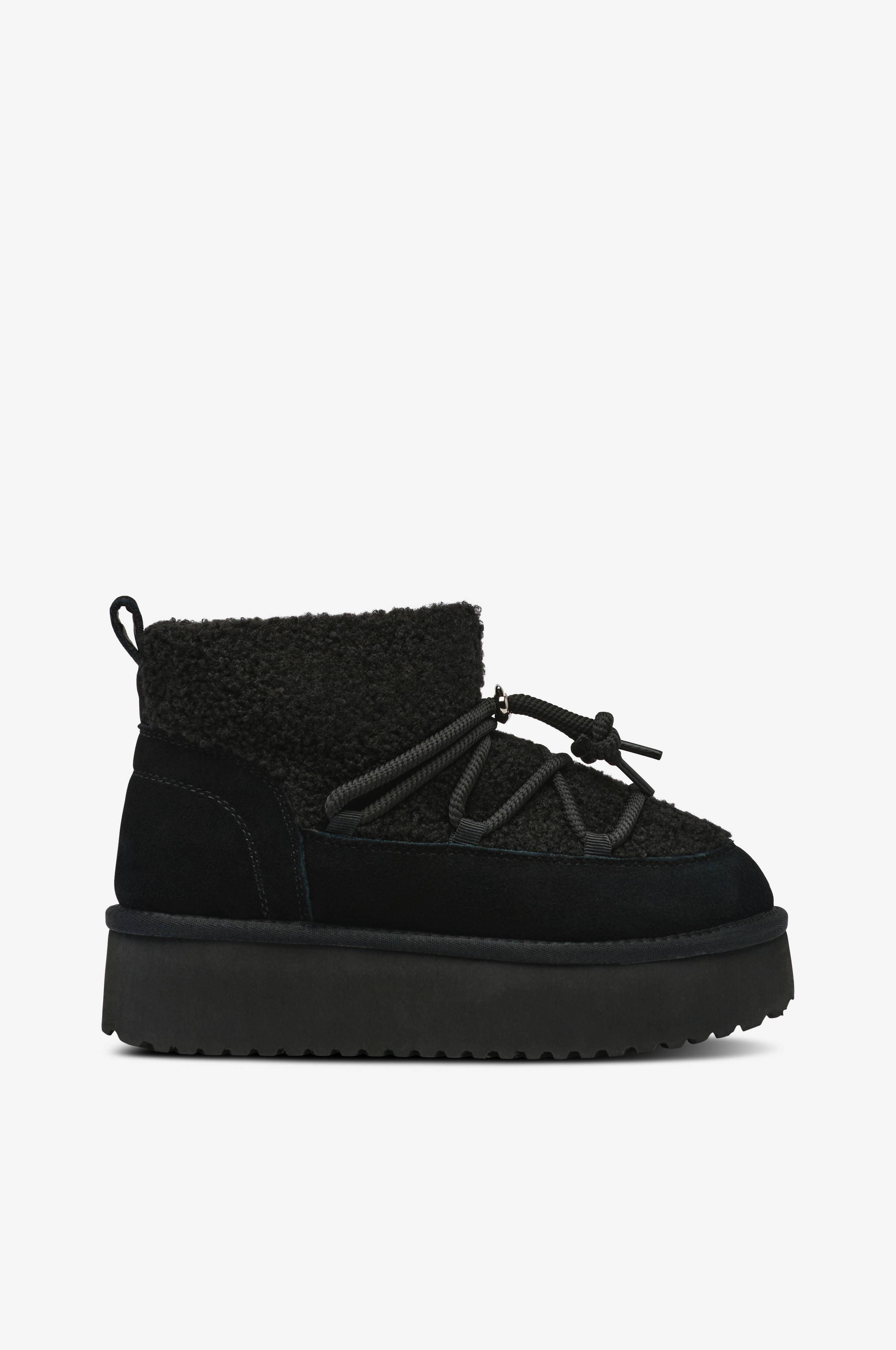 • Varmt forede boots i ruskind og kunstskind• Dekorativ snøring med stopper• Blødt, varmt for i kunstskind• Trækstrop bag på skaftet• Høj ydersål i gummi• Skafthøjde: 14 cm i str. 37• Sålhøjde: 4,5 cm