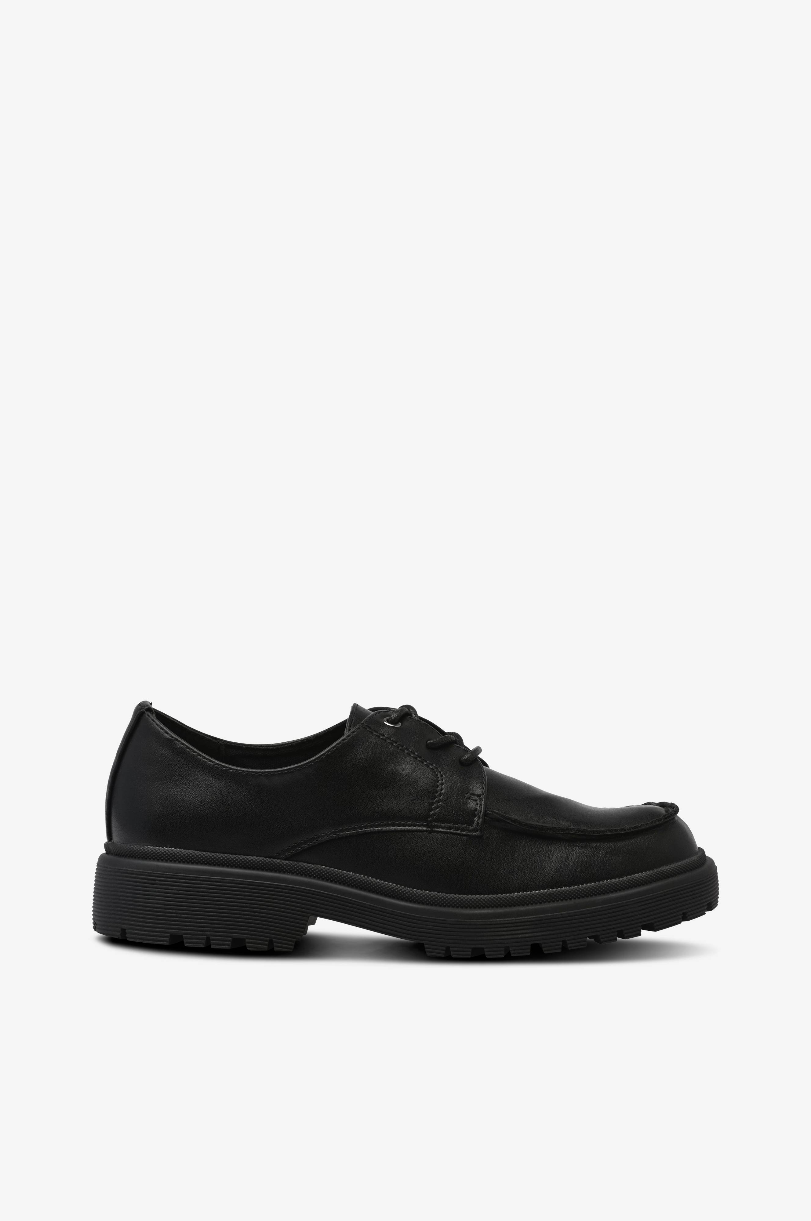 • Flade sko i imiteret læder• Snøring• For i tekstil og imiteret læder• Mønstret ydersål i gummi