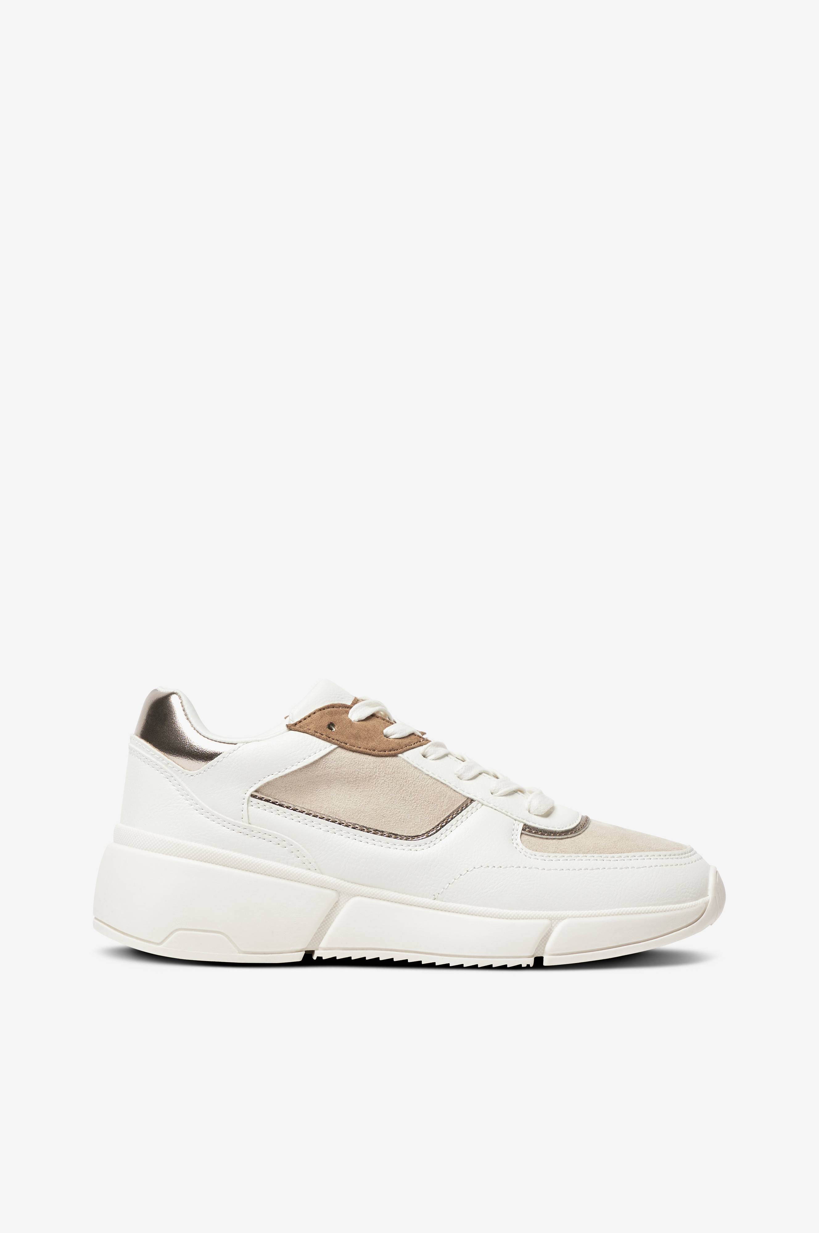 • Kondisko i imiteret læder med partier i blødt tekstil• Skinnende parti bagpå• Kileformet, sporty sål• Hælhøjde: 5 cm