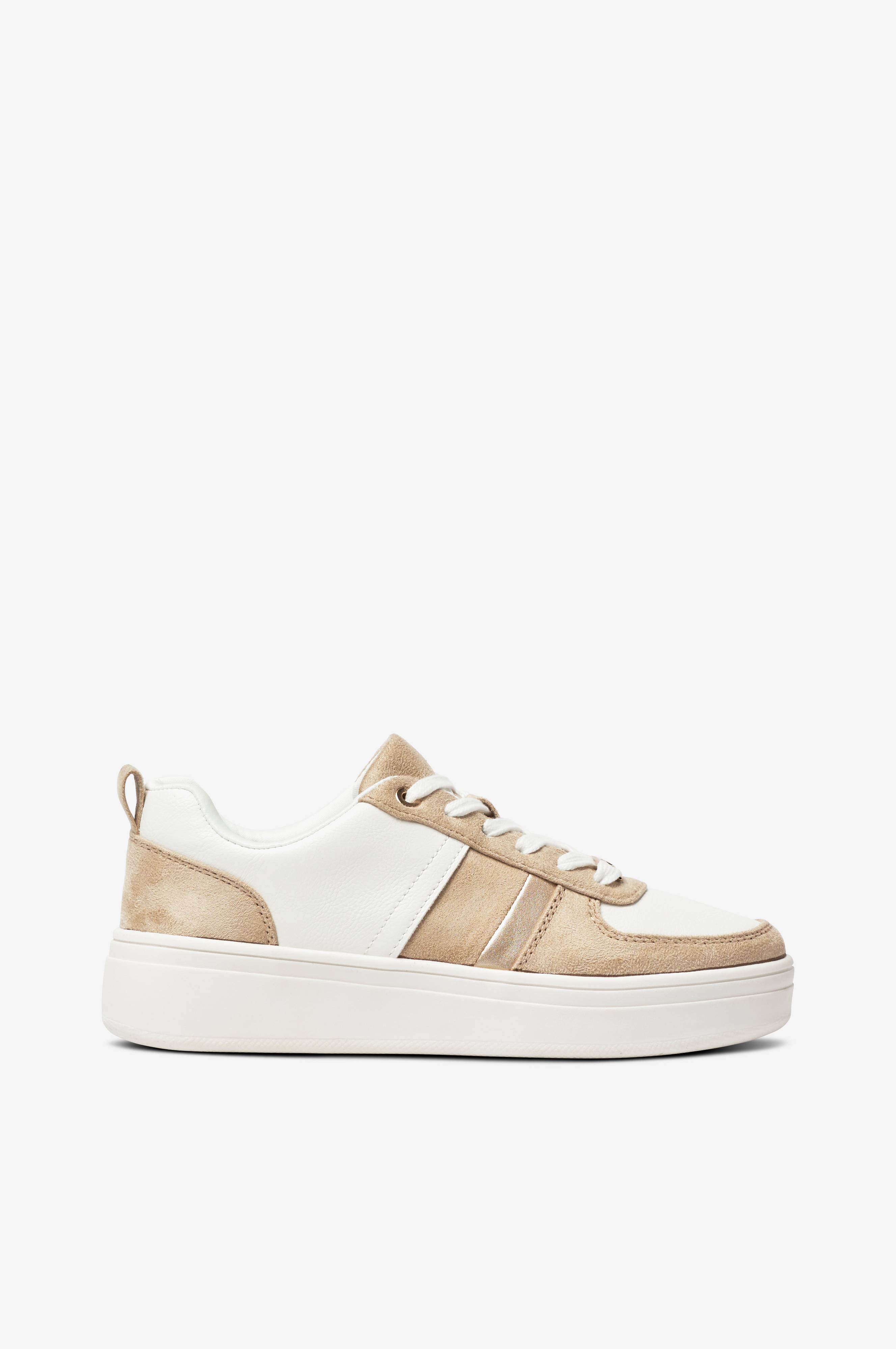 • Øvredel i imiteret læder og tekstil med sølvagtig detalje• Lidt højere sål