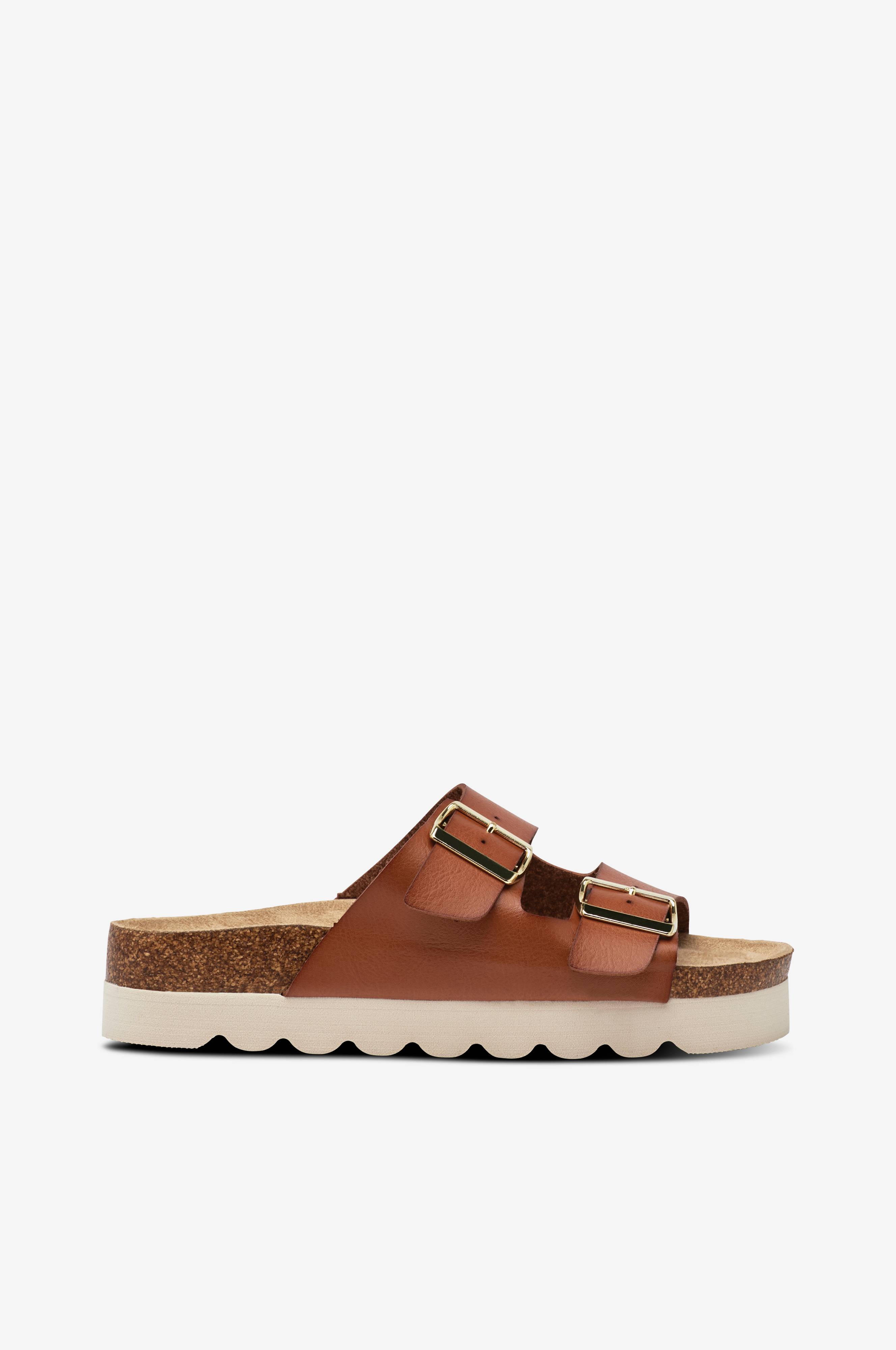 • Remme i imiteret læder• Glinsende spænder• Blød polstret fodseng• Mellemsål i kork