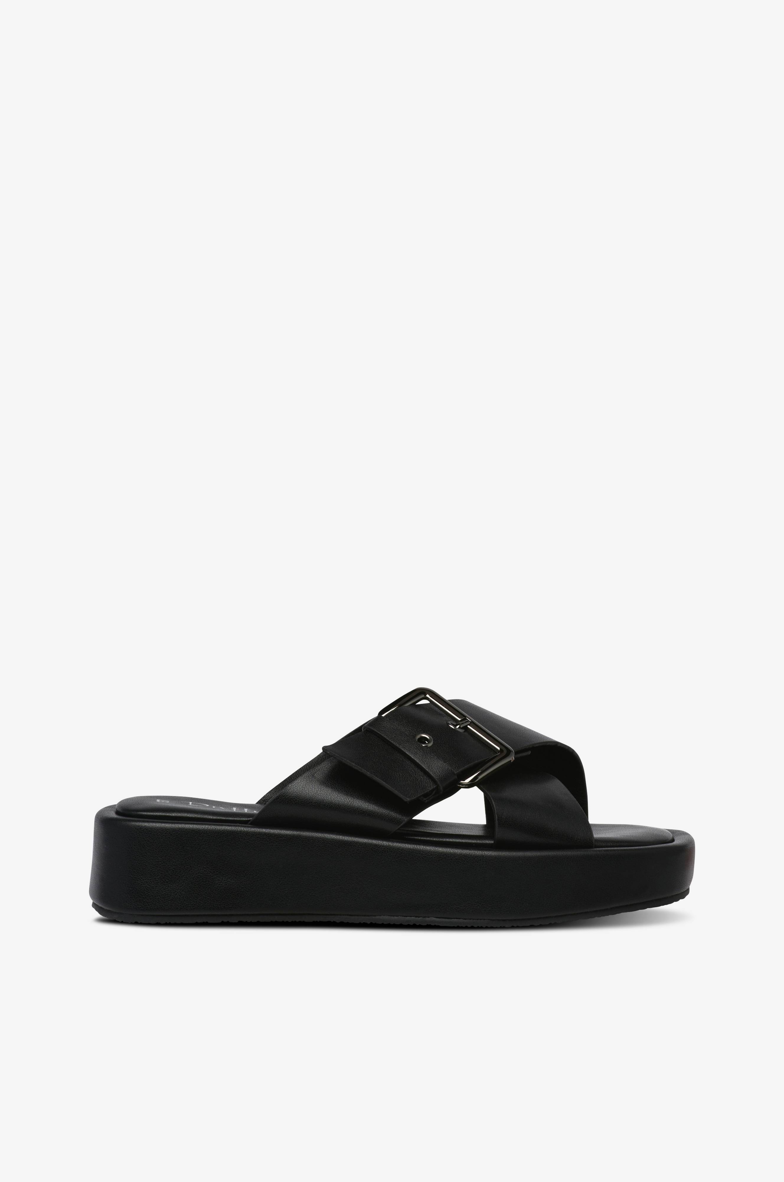 • Sandaler i imiteret læder• Krydsende remme med justérbar metallukning• Blød polstret fodseng• Ydersål i gummi• Sålhøjde: 4 cm