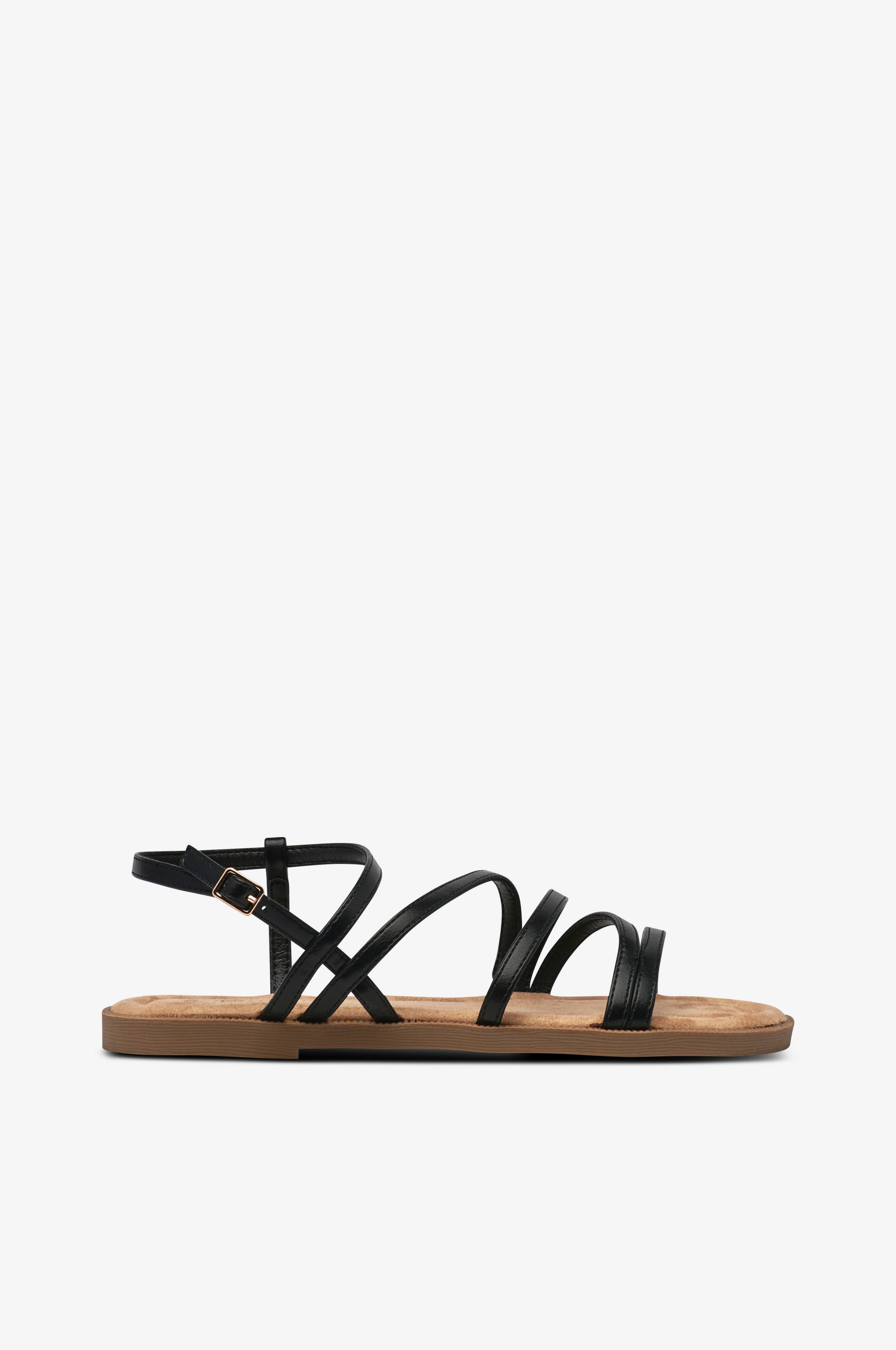 • Sandal med smalle remme i imiteret læder• Ankelkæde med justérbart spænde på siden• Blød polstret indersål• Ydersål i gummi