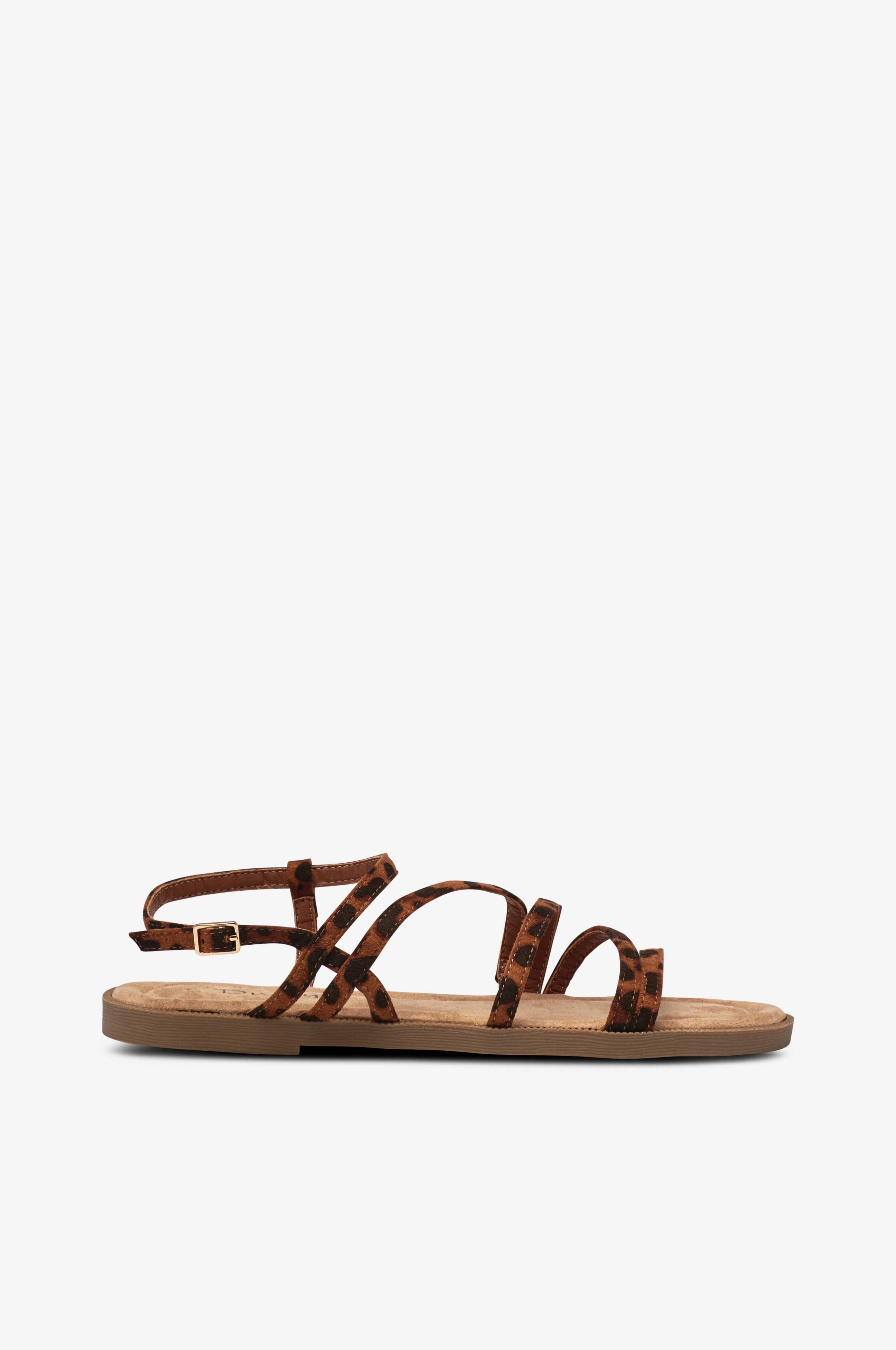 • Sandal med smalle remme i imiteret læder• Ankelkæde med justérbart spænde på siden• Blød polstret indersål• Ydersål i gummi