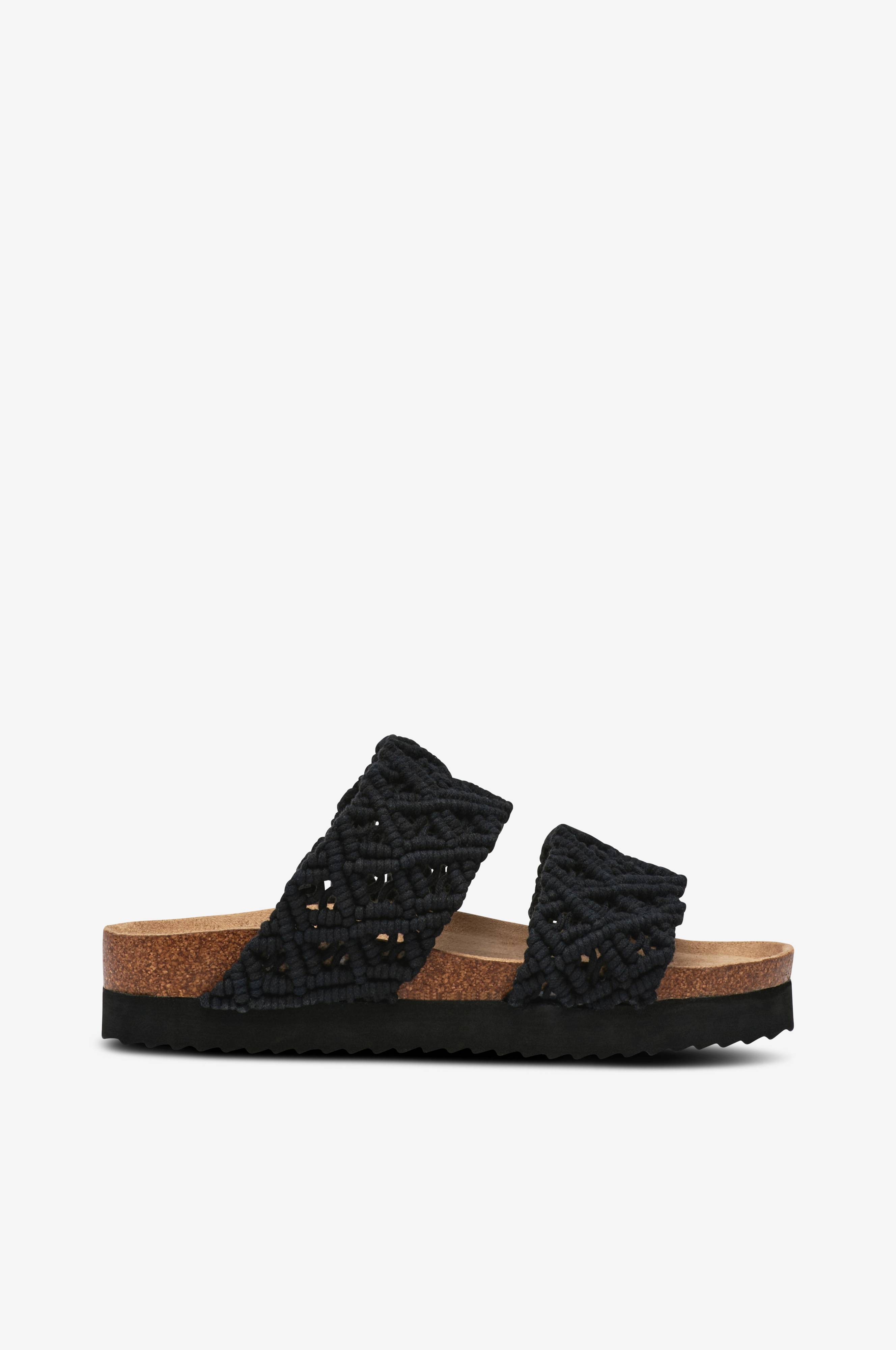 • Lete sandaler• To remme i flettet tekstil• Anatomisk, formet fodseng i ruskindsimitation• Fleksibel ydersål med riflet mønster