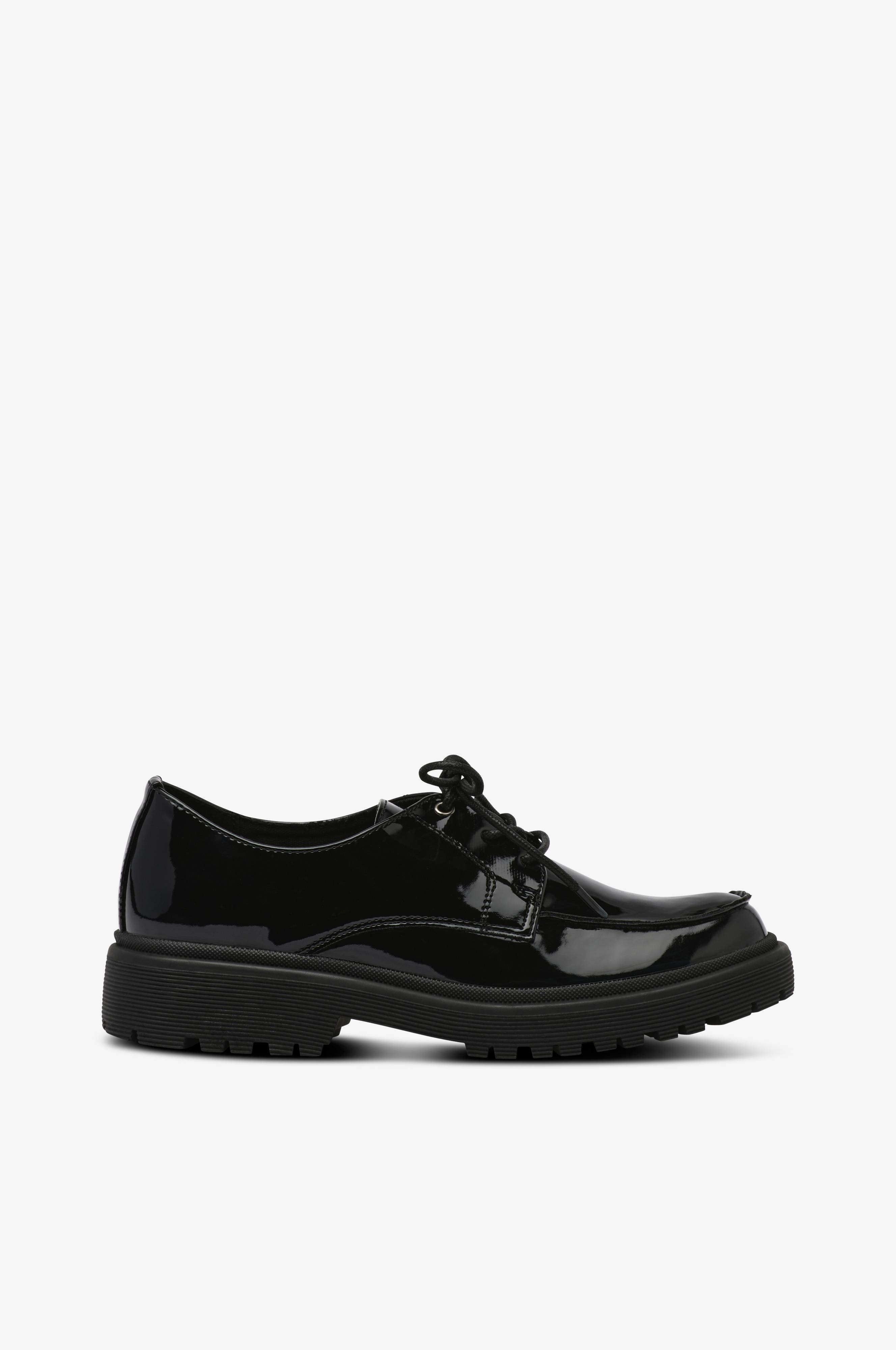 • Glat model i imiteret læder med snøring• Afrundet snude• Dekorative sømme• Tekstilforing• Blød polstret indersål• Grovmønstret ydersål• Hælhøjde: 3 cm