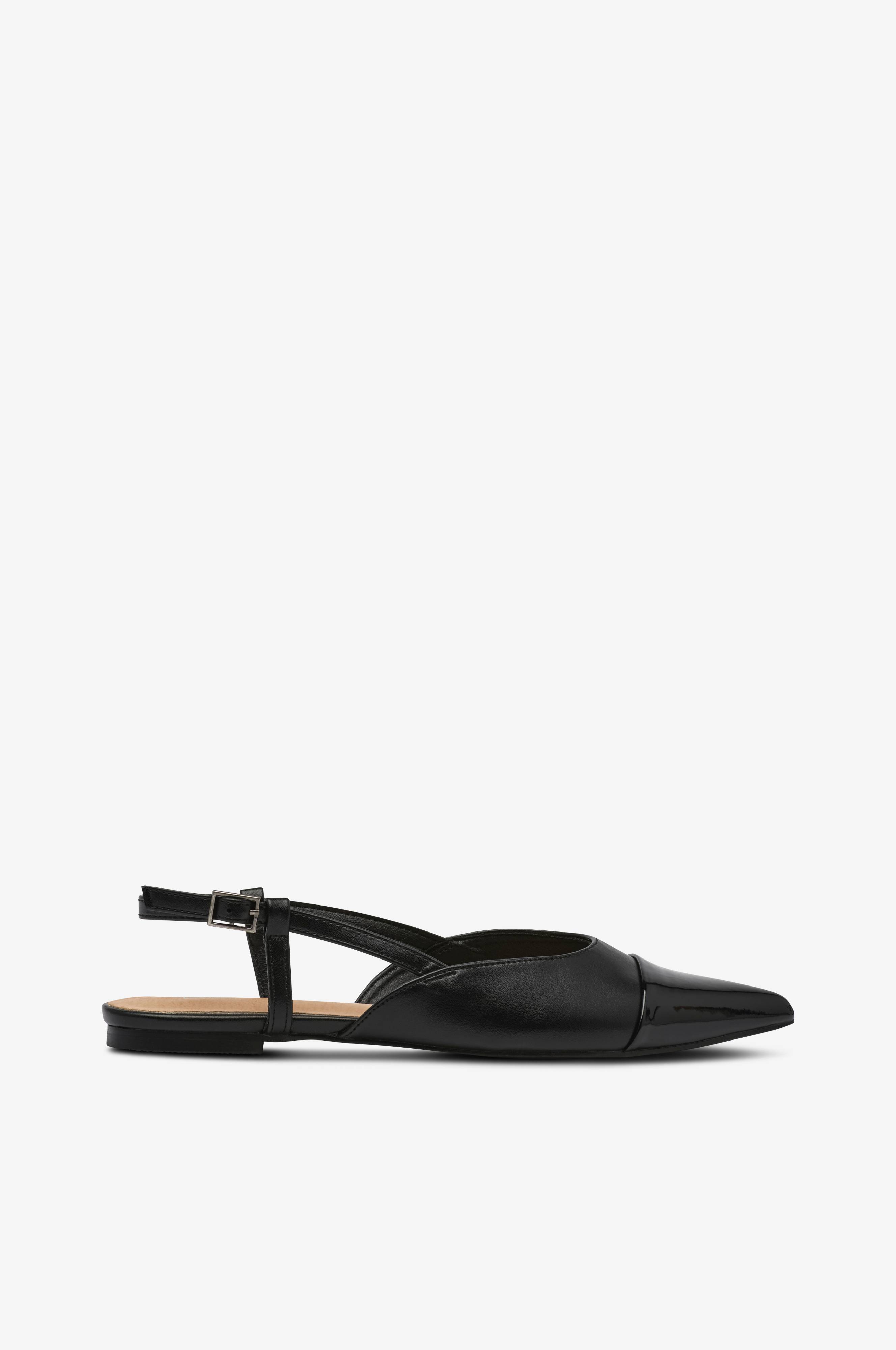 • Slingback i imiteret læder med spids tåform• Justérbar hælrem• Blød polstret indersål• Lav hæl