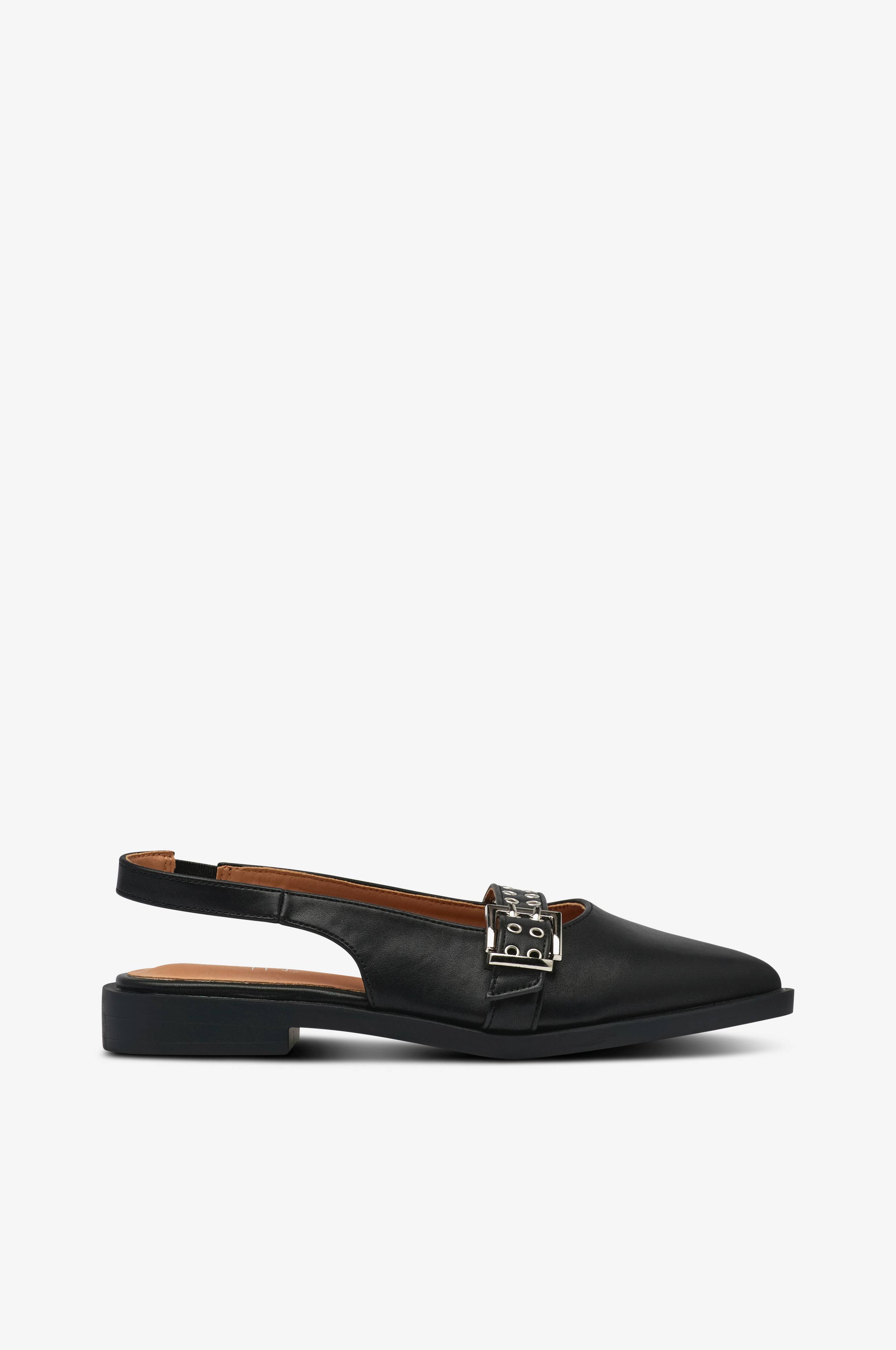 • Model i imiteret læder• Spids snude• Justérbar rem• Hælrem med elastisk Vedhæftning• Hælhøjde: 2,5 cm