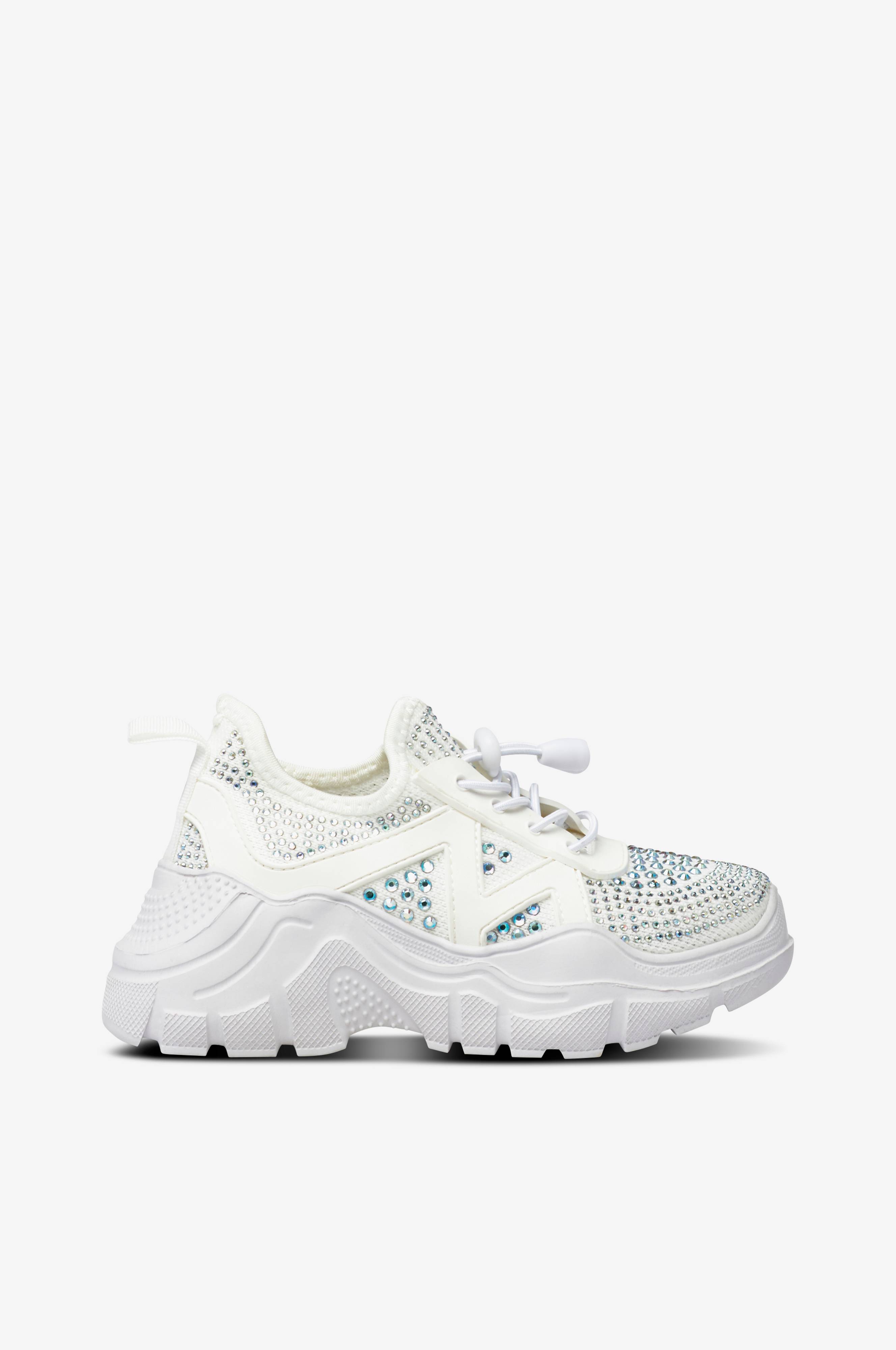 Sneakers i tekstil og imiteret skind med glitrende, dekorative sten rundt om. Strømpelignende pasform. Elastisk quicksnøre med stop. Tekstilfor og udtagelig indersål. Vævet trækstrop bagpå. Ydersål i gummi.