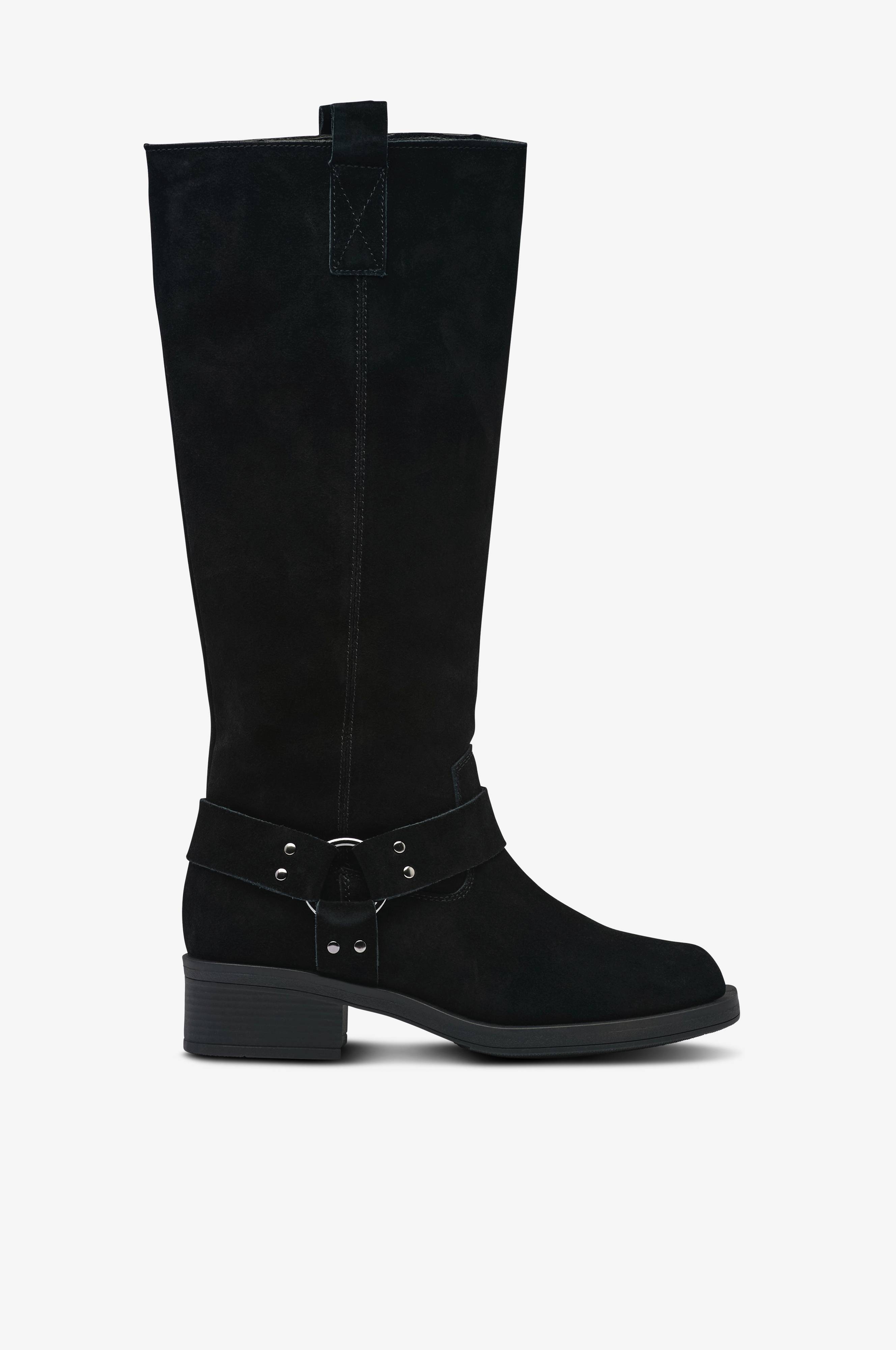 • Støvler i ruskind med dekorative remme på skaftet• Lynlås på den ene side• Varmende tekstilforing• Ydersål i gummi• Skafthøjde: 37 cm i str. 37