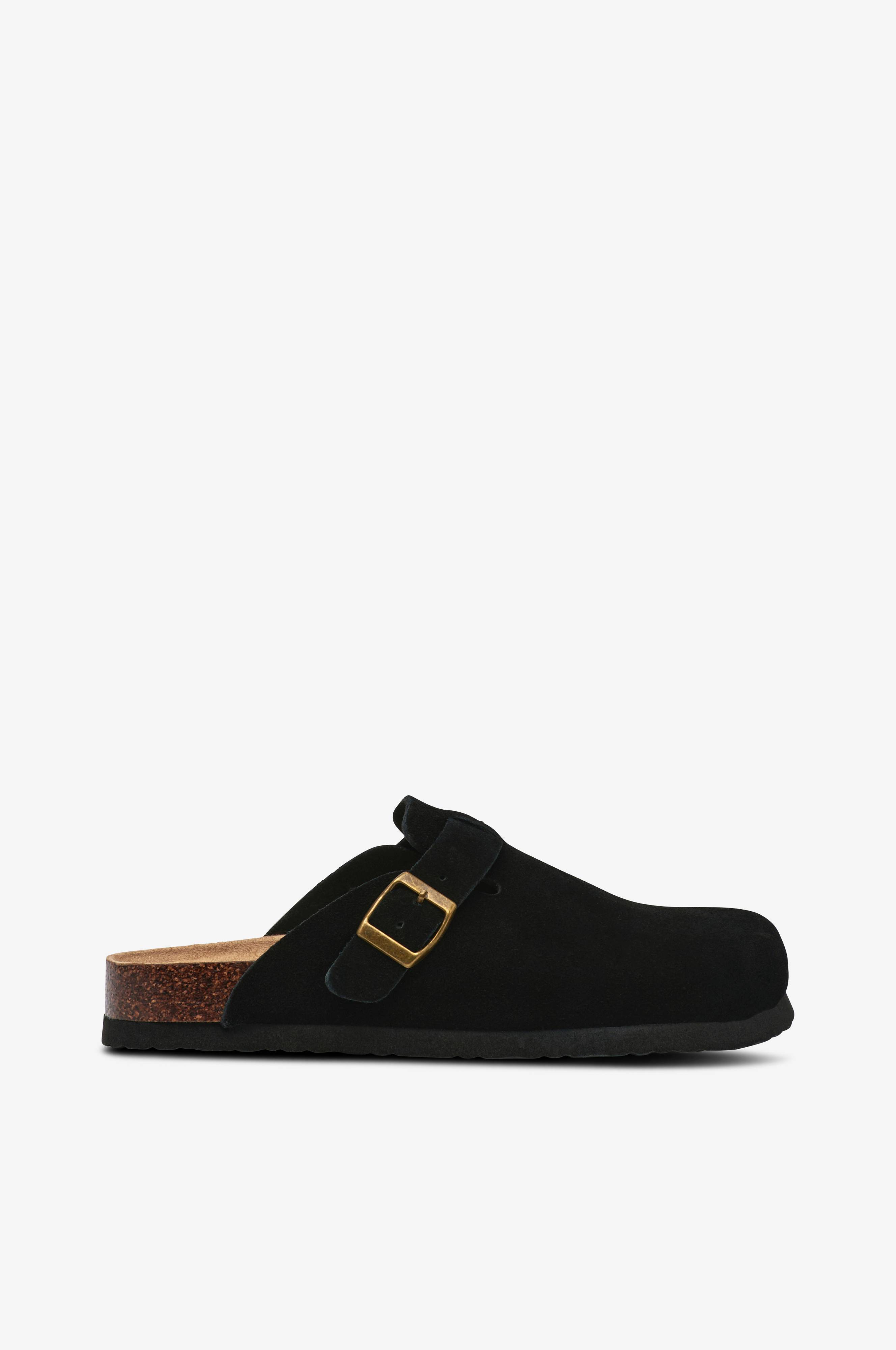 • Øvredel i ruskind• Justérbar metallukning• Anatomisk, formet fodseng med polstring i blød ruskindsimitation