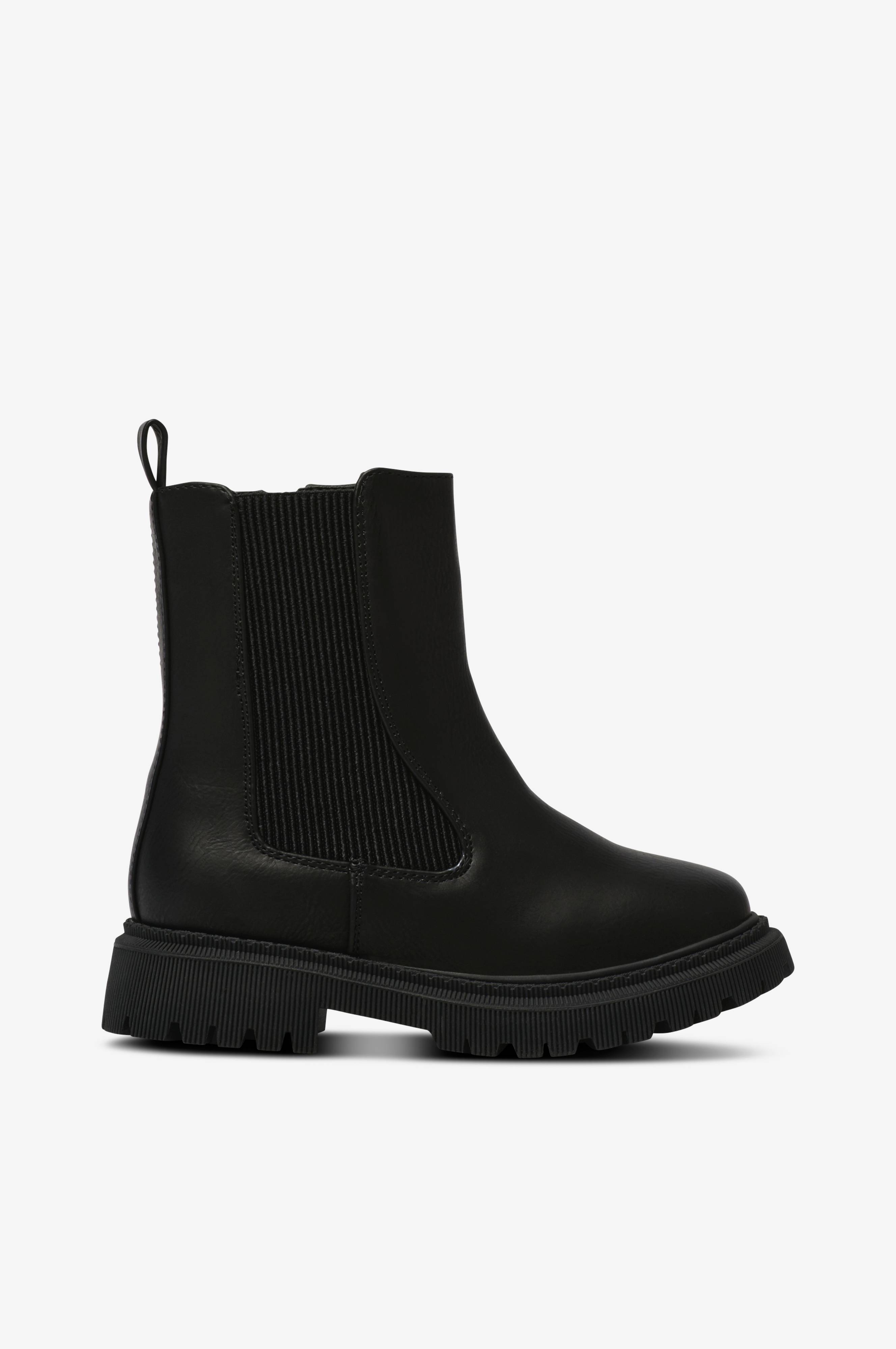 • Boots i imiteret læder• Elastisk panel på den ene side• Lynlås på den anden side• Varm foring i kunstskind• Ydersål i gummi
