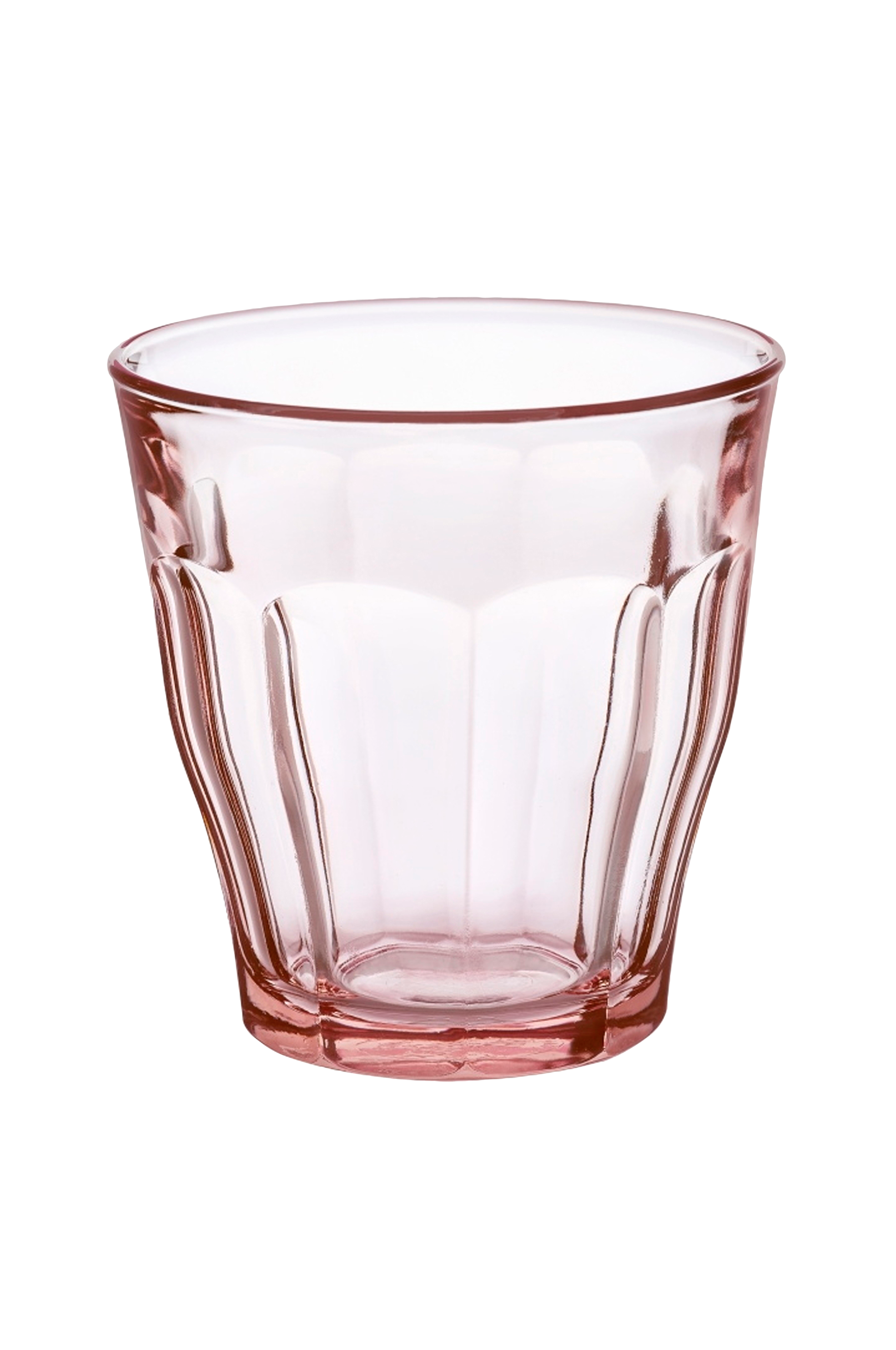 duralex glasset picardie, der blev fremstillet i 1954, blev en succes fra første dag. det er designet til at være praktisk at holde i hånden med facetter, der reflekterer lyset og fortryller drikken. Hærdet og modstandsdygtigt over for stød. Pink farve er den seneste farve i picardie-familien.