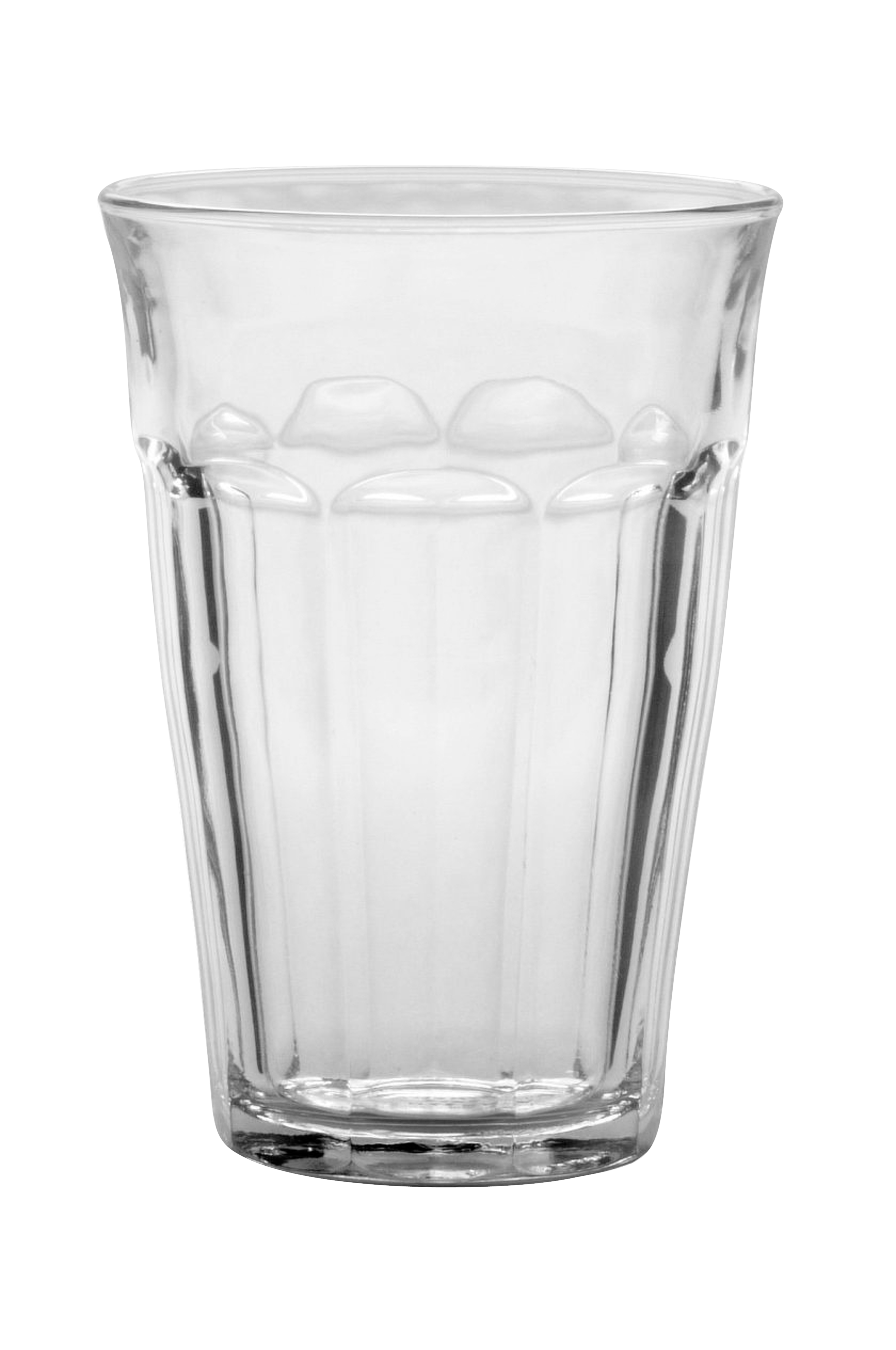 duralex glasset picardie, der blev fremstillet i 1954, blev en succes fra første dag. det er designet til at være praktisk at holde i hånden med facetter, der reflekterer lyset og fortryller drikken. hærdet og stødsikkert.