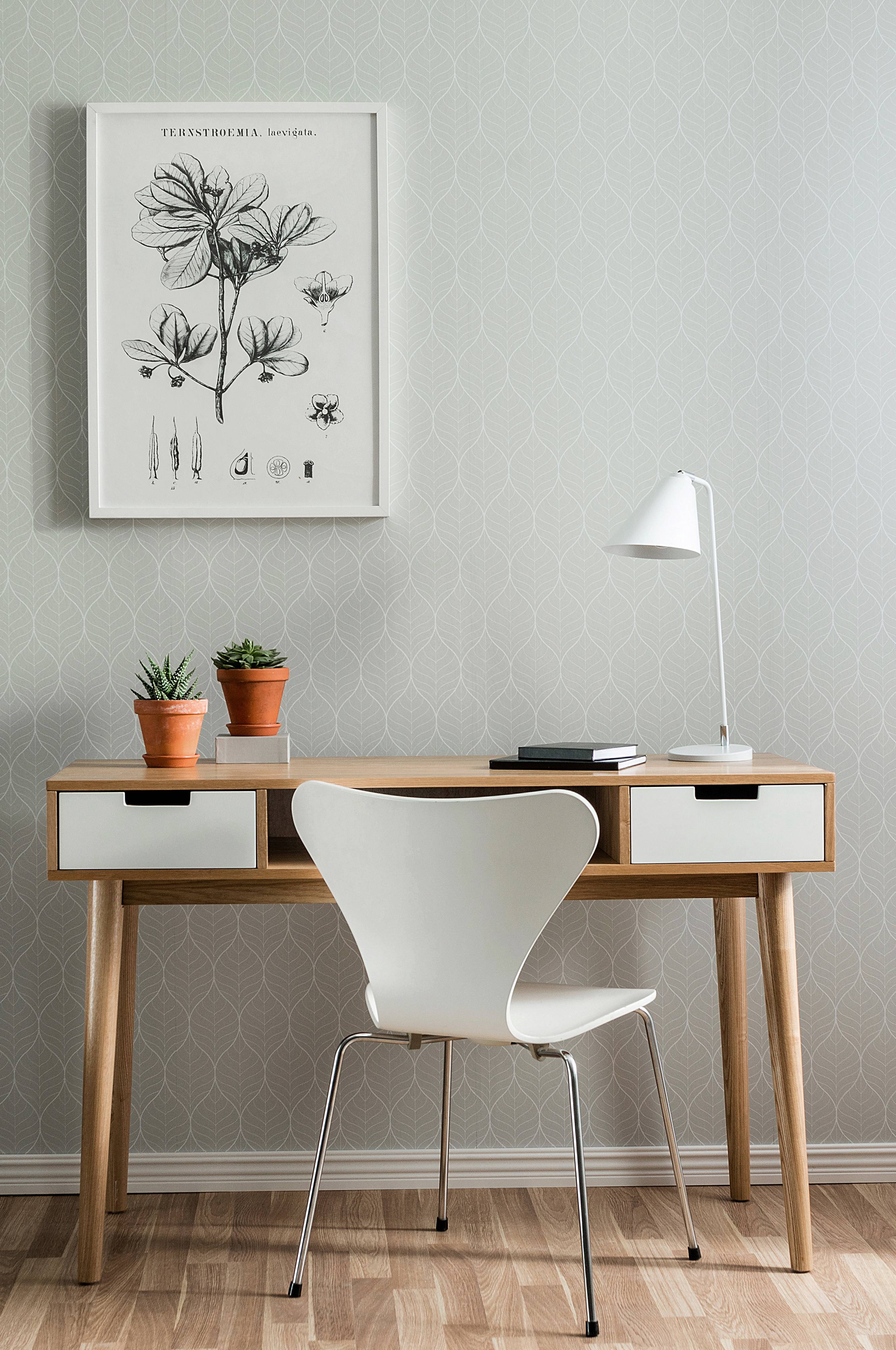 Et QuickUp-tapet (non-woven materiale). Let at tapetsere, limes direkte på væggen. Tapetet er produceret i Sverige. Det er fremstillet under hensyn til vores miljø, kan vaskes med sæbe og vand og har en høj lysægthed. Rullelængde 10,05 m, bredde 53 cm. Mønsterhøjde 17.6 cm, 17,6 cm mønsterrapport. Lige mønsterrapport.