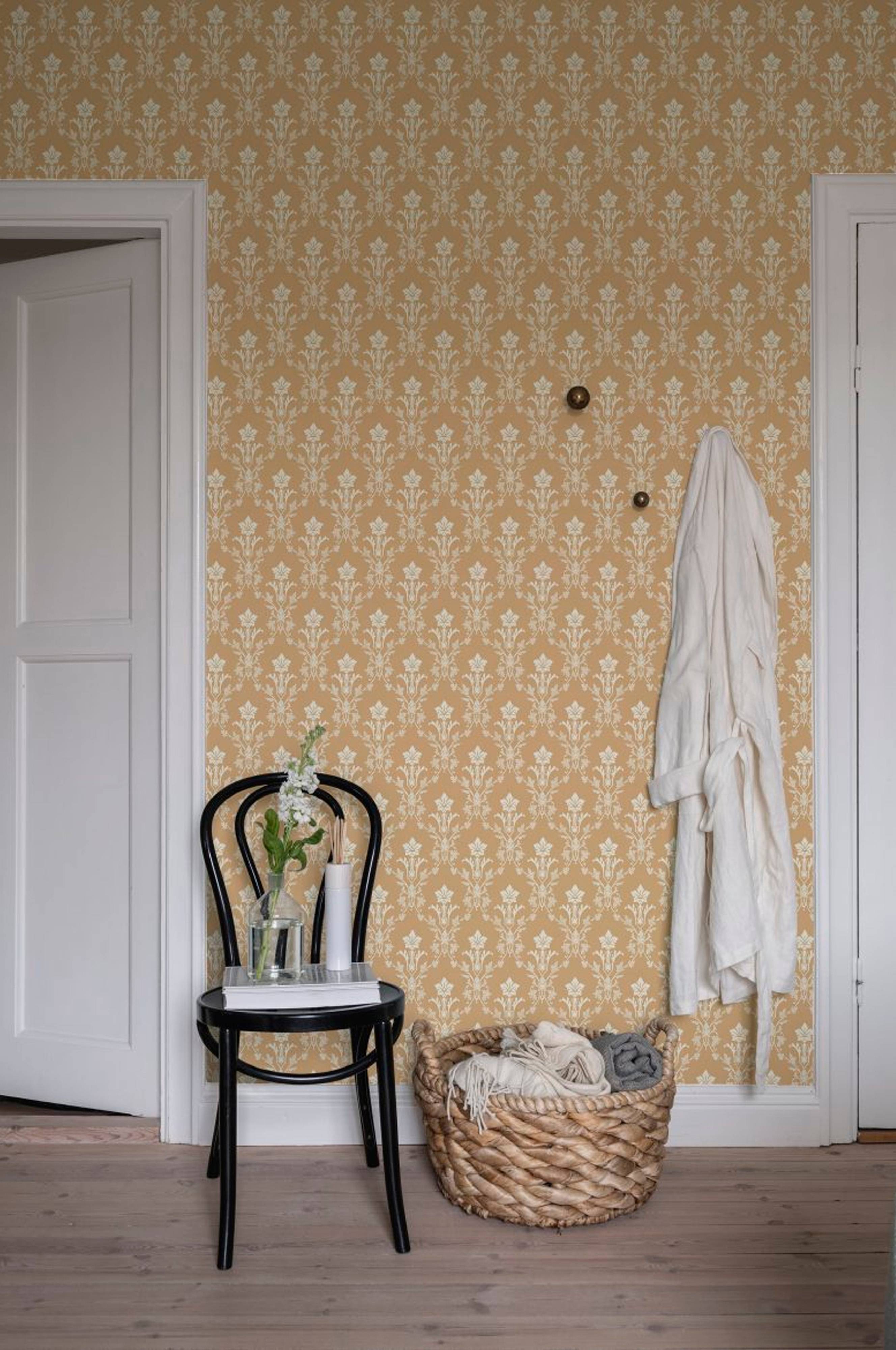Et af vores allermest populære medaljoner i ny udgave. En populær medaljon fra det sene 1800-tallet som aldrig går af mode. Modellen til dette tapet blev fundet i forbindelse med restaureringen af Hudiksvalls teater i 1972 og er samtidig med den genopbygning, der blev udført i begyndelsen af 1880'erne, da teatret fik sit nuværende udseende. Det stramme, stiliserede mønster, næsten inspireret af renæssancen, er karakteristisk for sidste halvdel af 1800-tallet. Non woven-lim på væggen. Lige mønsterrapport 19 cm