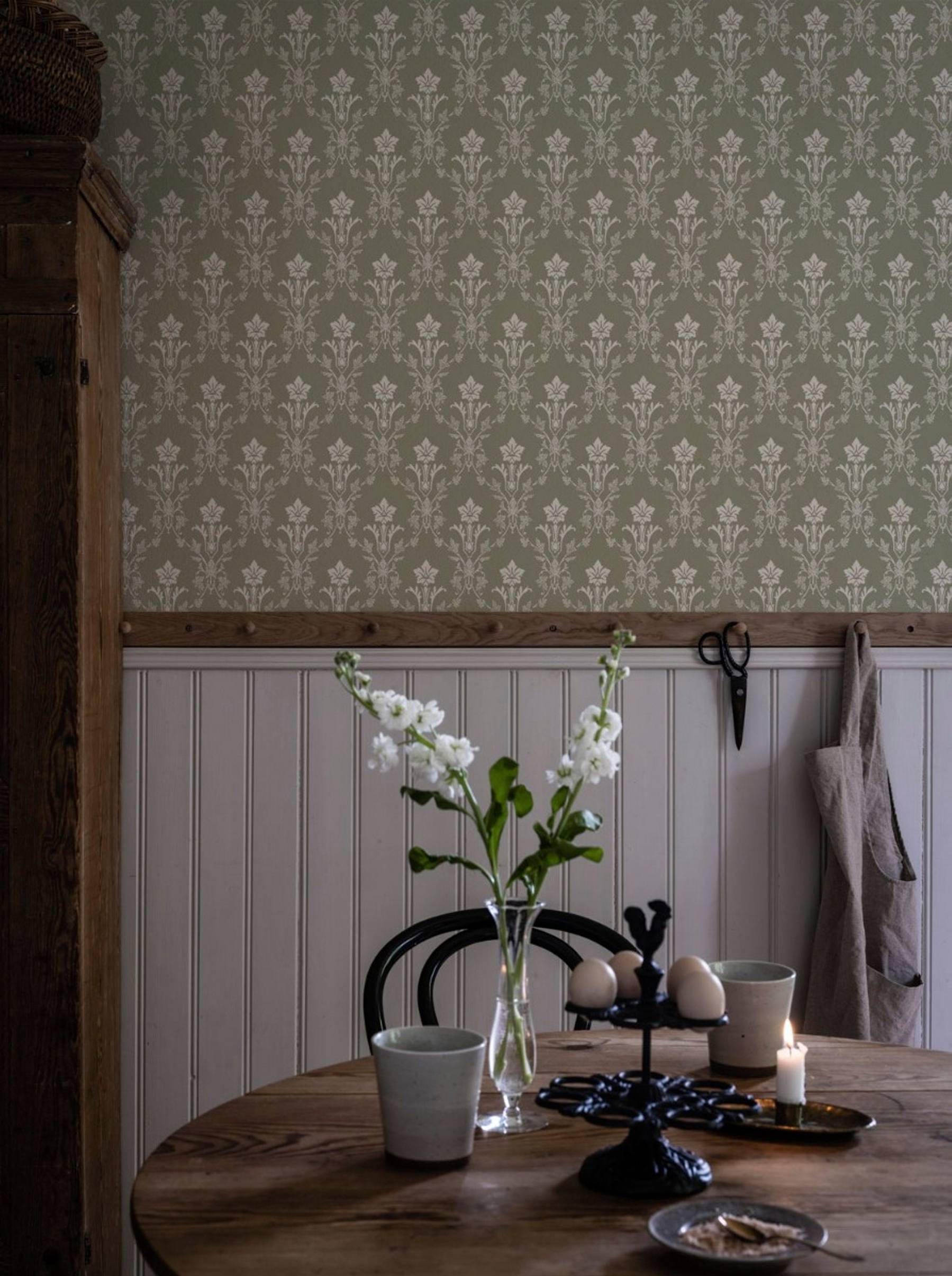 Hudiksvalls teater er et af vores mest elskede mønstre. Förlagan till tapeten hittades under restaureringen av hudiksvalls teater år 1972 och dateras till början av 1880-talet. Det strama og stiliserede mönstret, inspirerat av nyrenässansen, är karaktäristiskt för 1800-talets senare hälft.