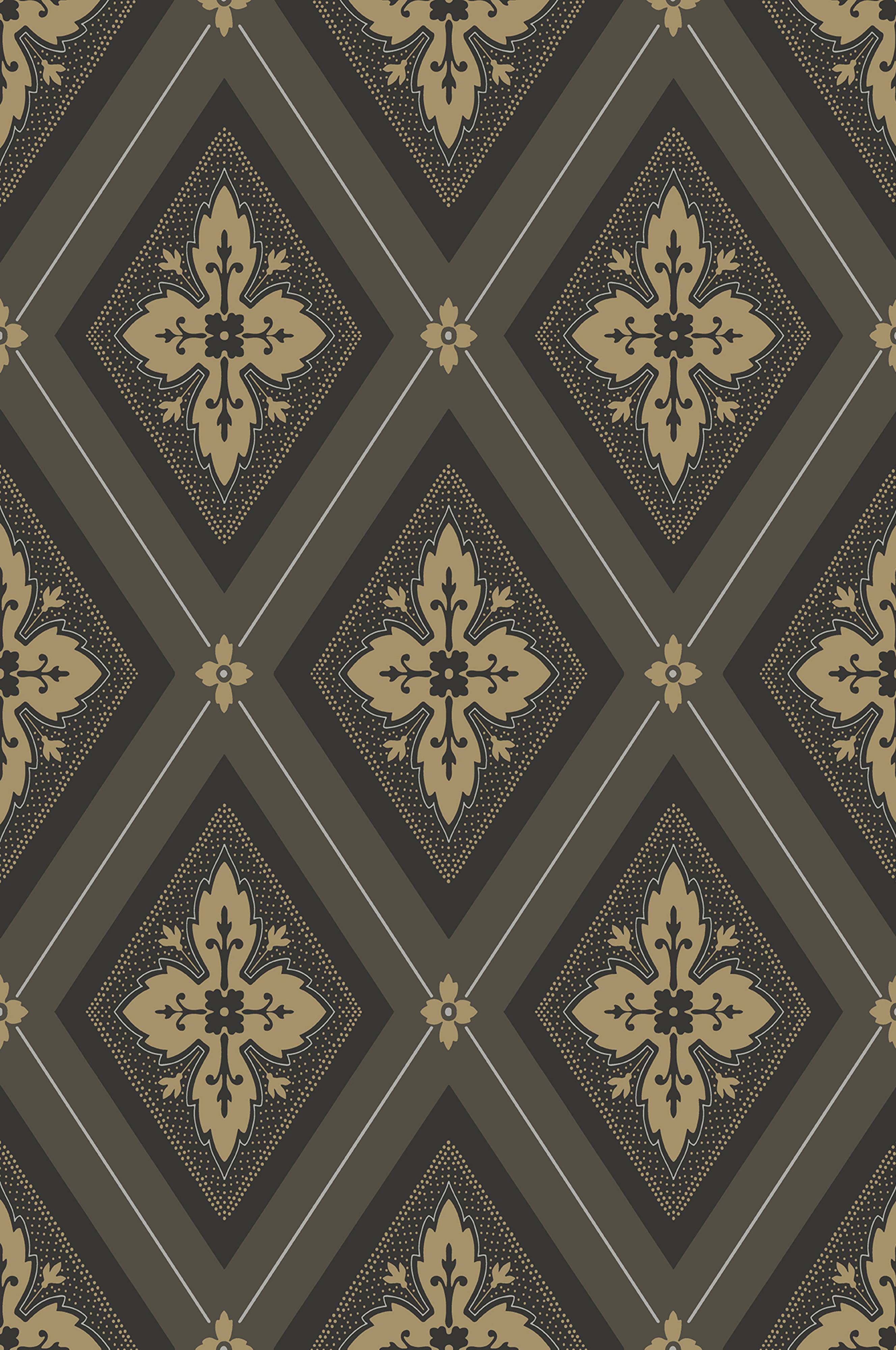 Tapet Astrid sort/guld bestiller du på varenr. 1579598-02-0. Tapetet leveres i rulle med længde 10,05 m og bredde 53 cm.