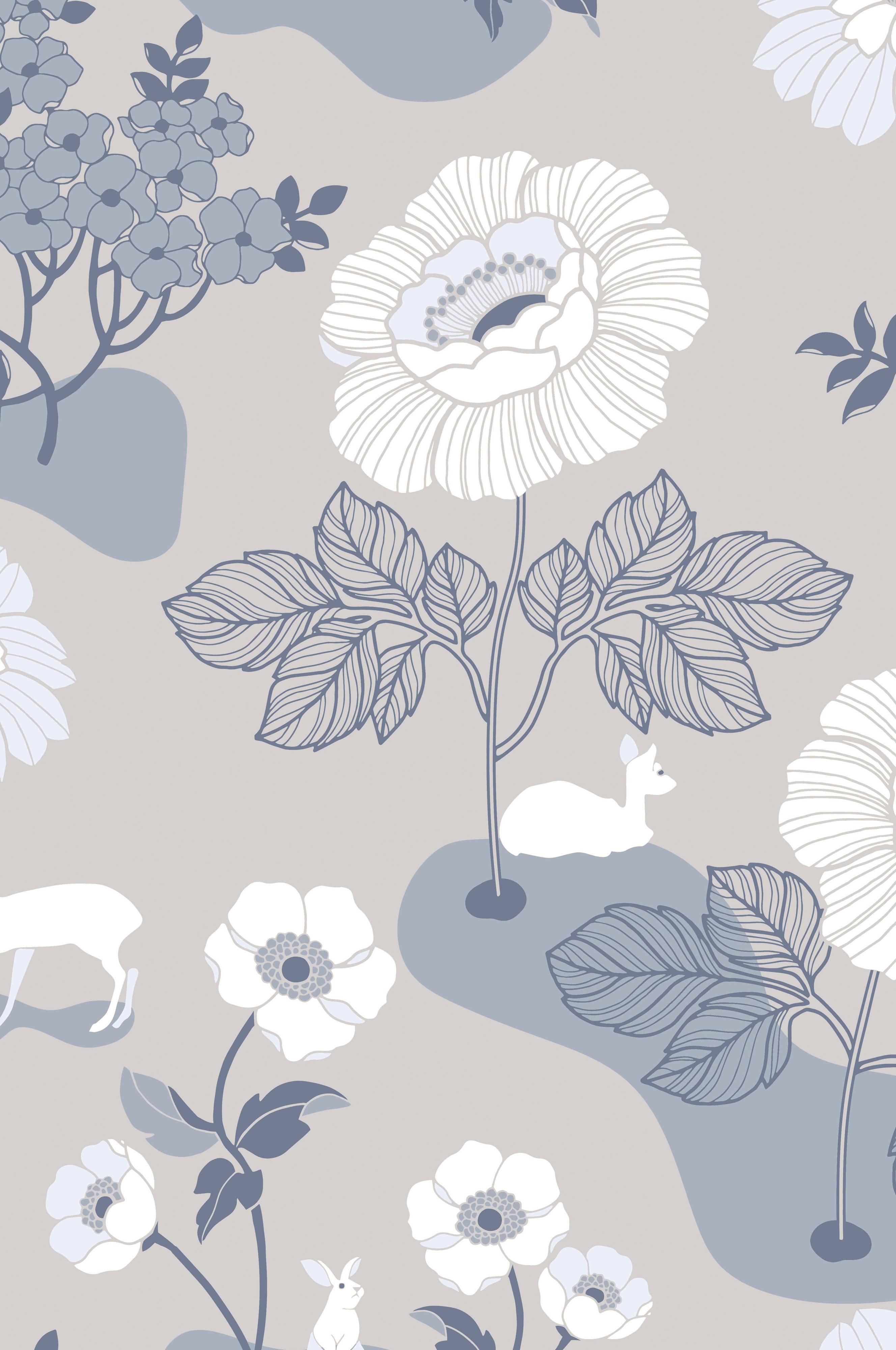Tapet Blomsteräng grå bestiller du på varenr. 1550719-02-0. Tapetet leveres i rulle med længde 10,05 m og bredde 53 cm.
