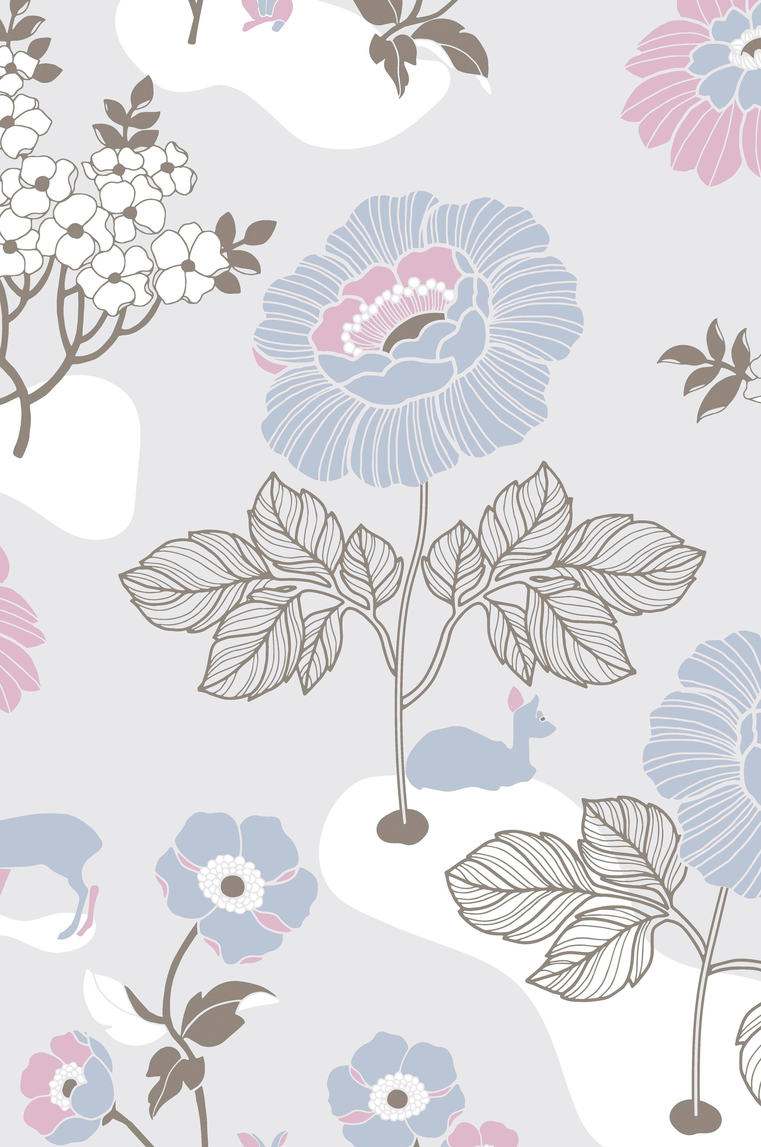 Tapet Blomsteräng lysegrå bestiller du på varenr. 1550719-01-0. Tapetet leveres i rulle med længde 10,05 m og bredde 53 cm.