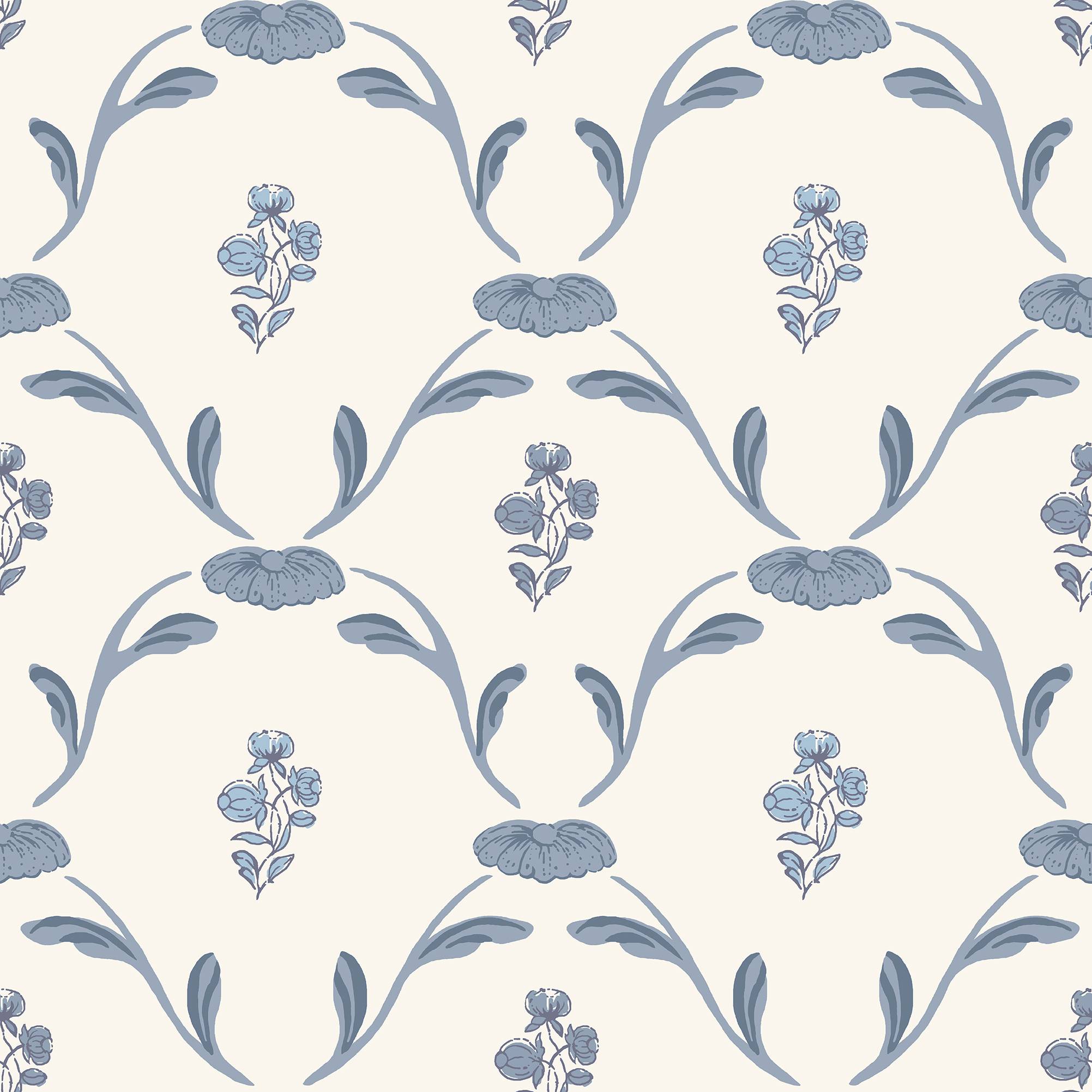 Tapetprøve til tapet Hemmingbo, farve blå.Mål på denne prøve er ca. 210 x 297 mm (svarer til en A4-side).