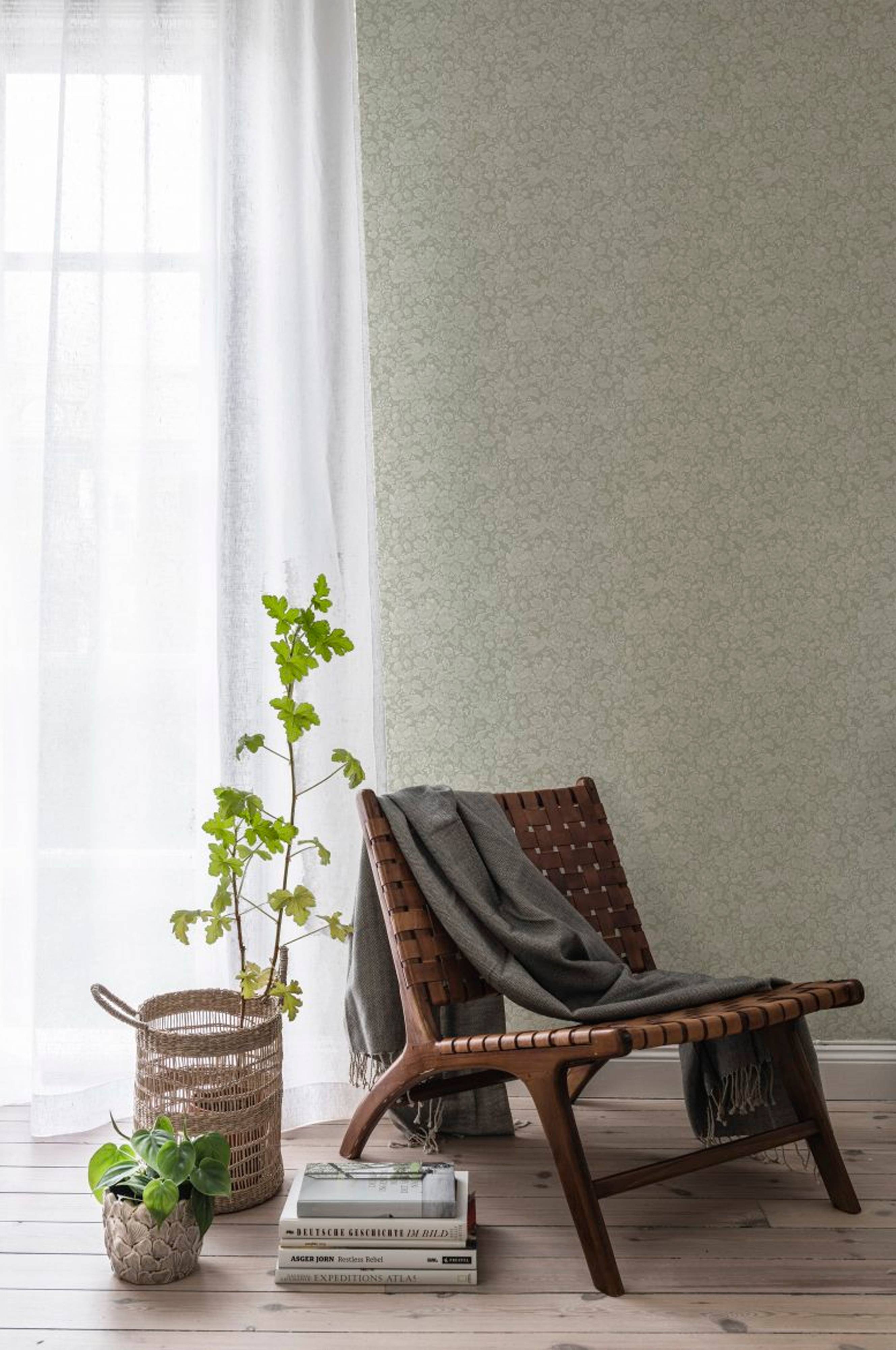Tapet Jenny light green bestiller du på varenr. 1665001-02-0. Tapetet leveres i rulle med længde 10,05 m og bredde 53 cm.