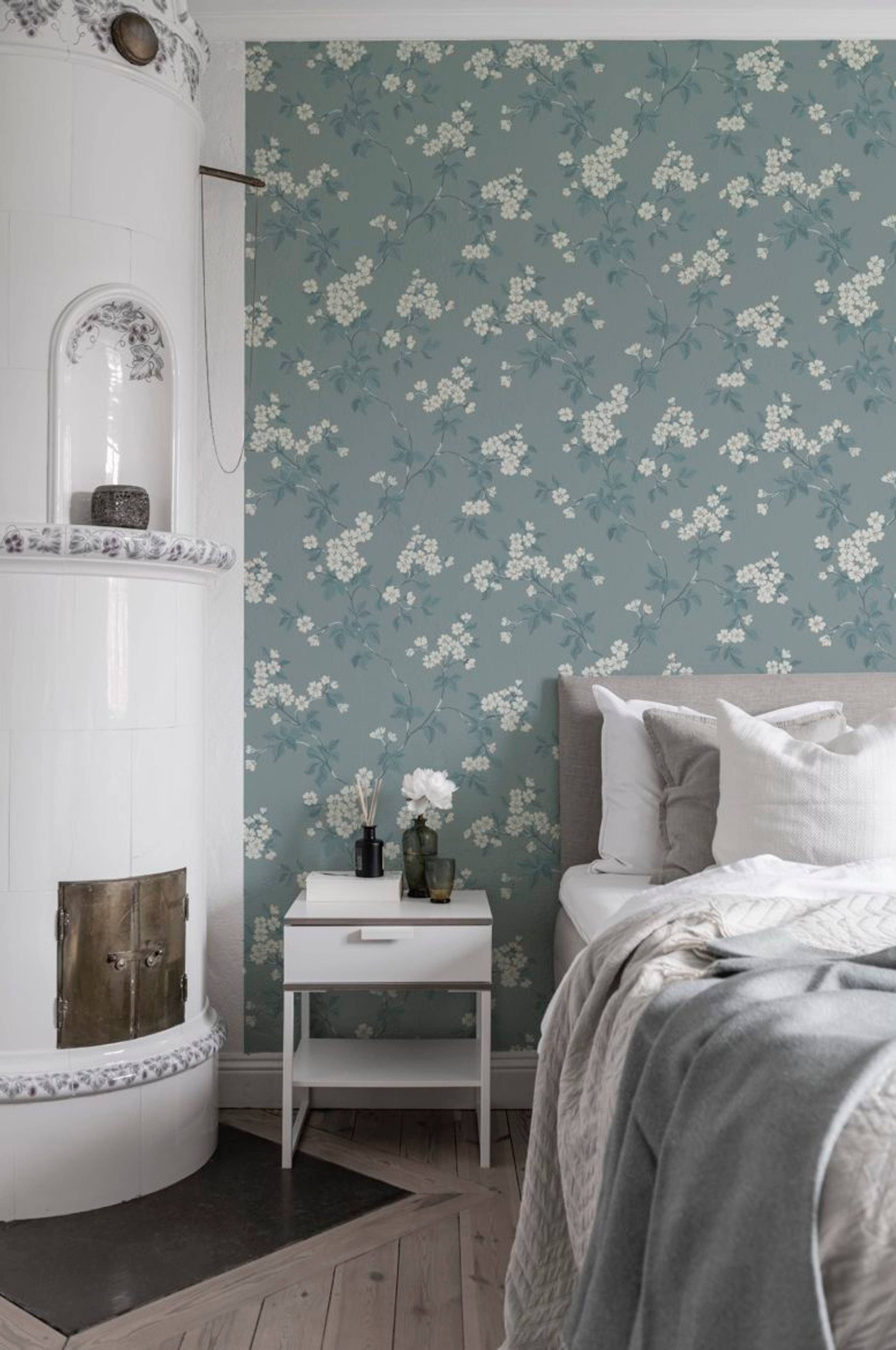 Tapet Karin blå bestiller du på varenr. 1665002-03-0. Tapetet leveres i rulle med længde 10,05 m og bredde 53 cm.