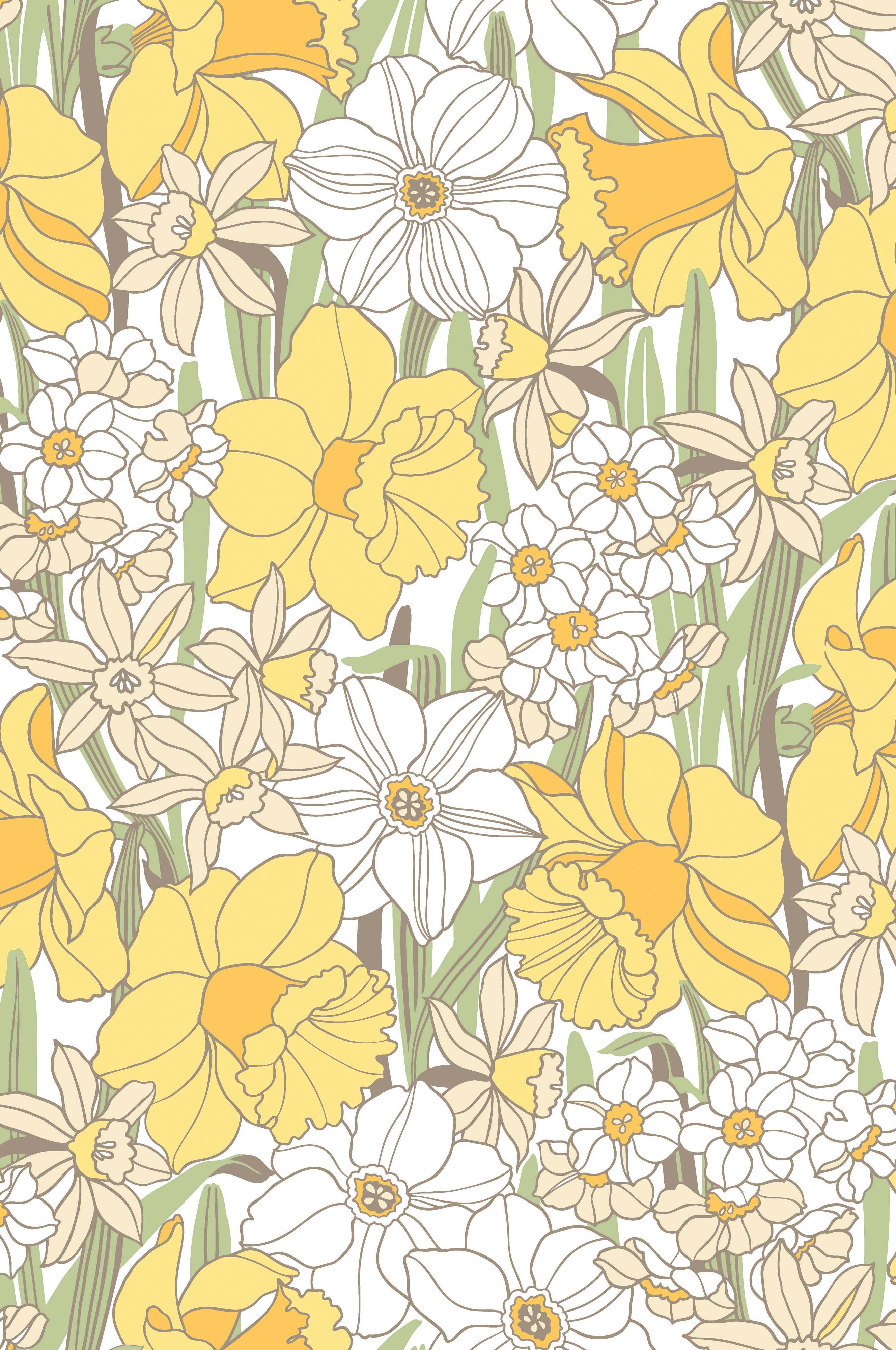 Tapet Påsklilja gul bestiller du på varenr. 1550727-02-0. Tapetet leveres i rulle med længde 10,05 m og bredde 53 cm.