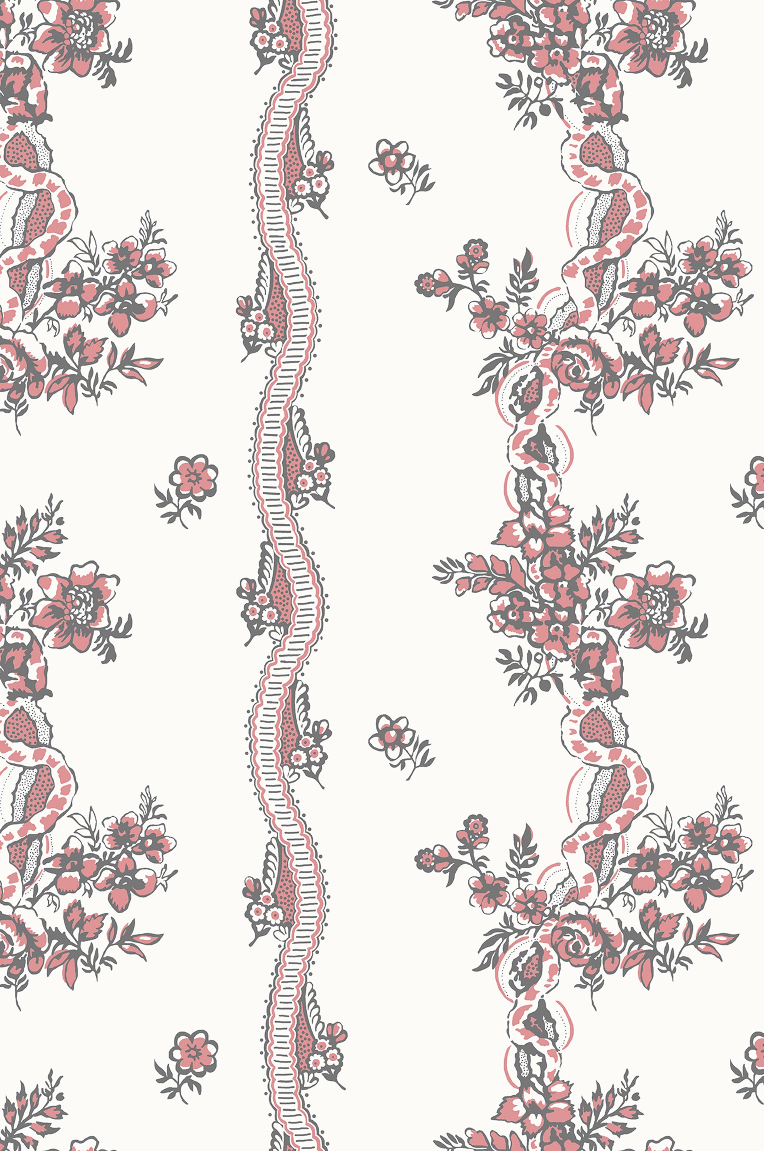 Tapetprøve til tapet Renshammar, farve rød.Mål på denne prøve er ca. 210 x 297 mm (svarer til en A4-side).