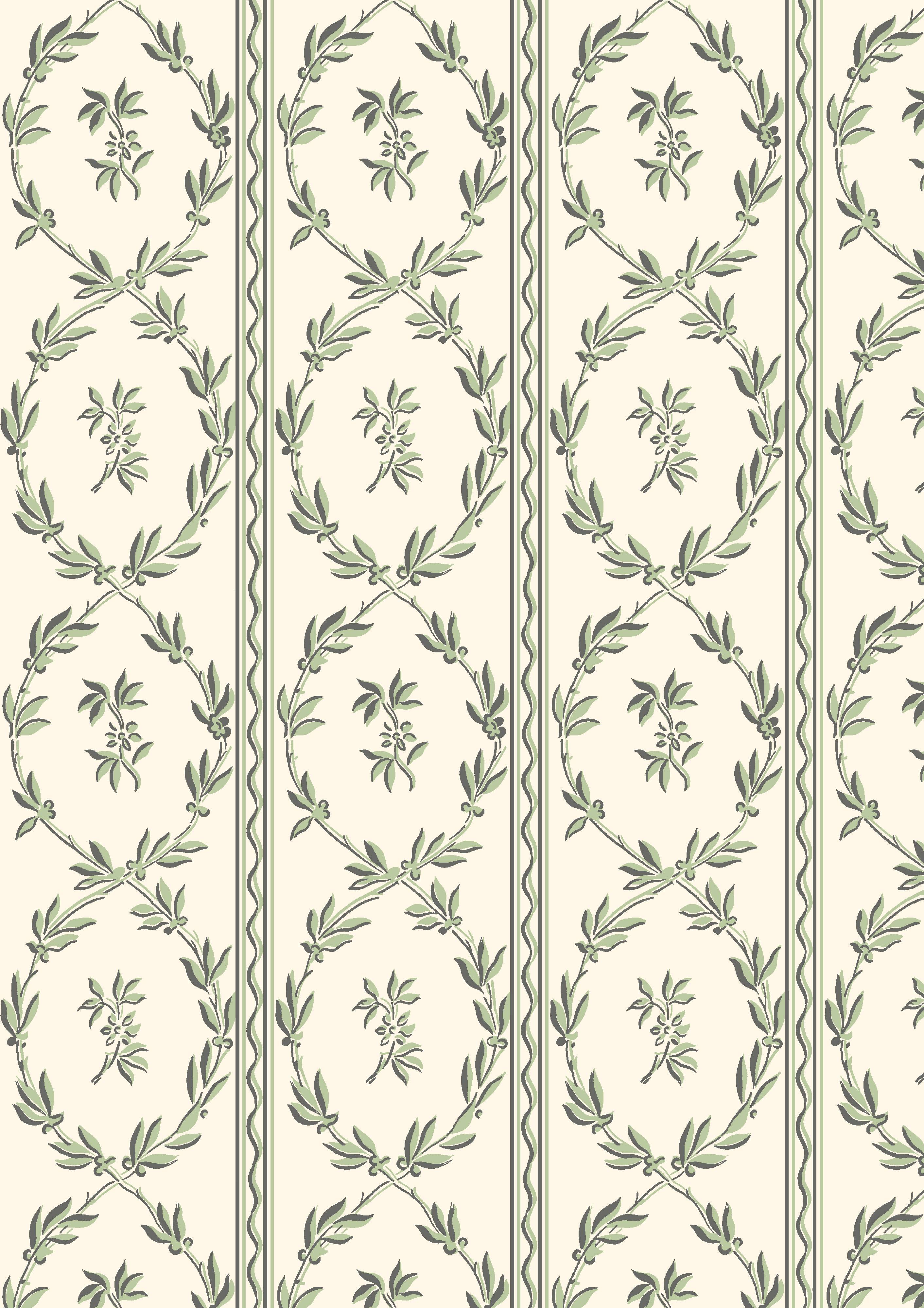 Tapetprøve til tapet Stocksundstorp, farve grøn.Mål på denne prøve er ca. 210 x 297 mm (svarer til en A4-side).