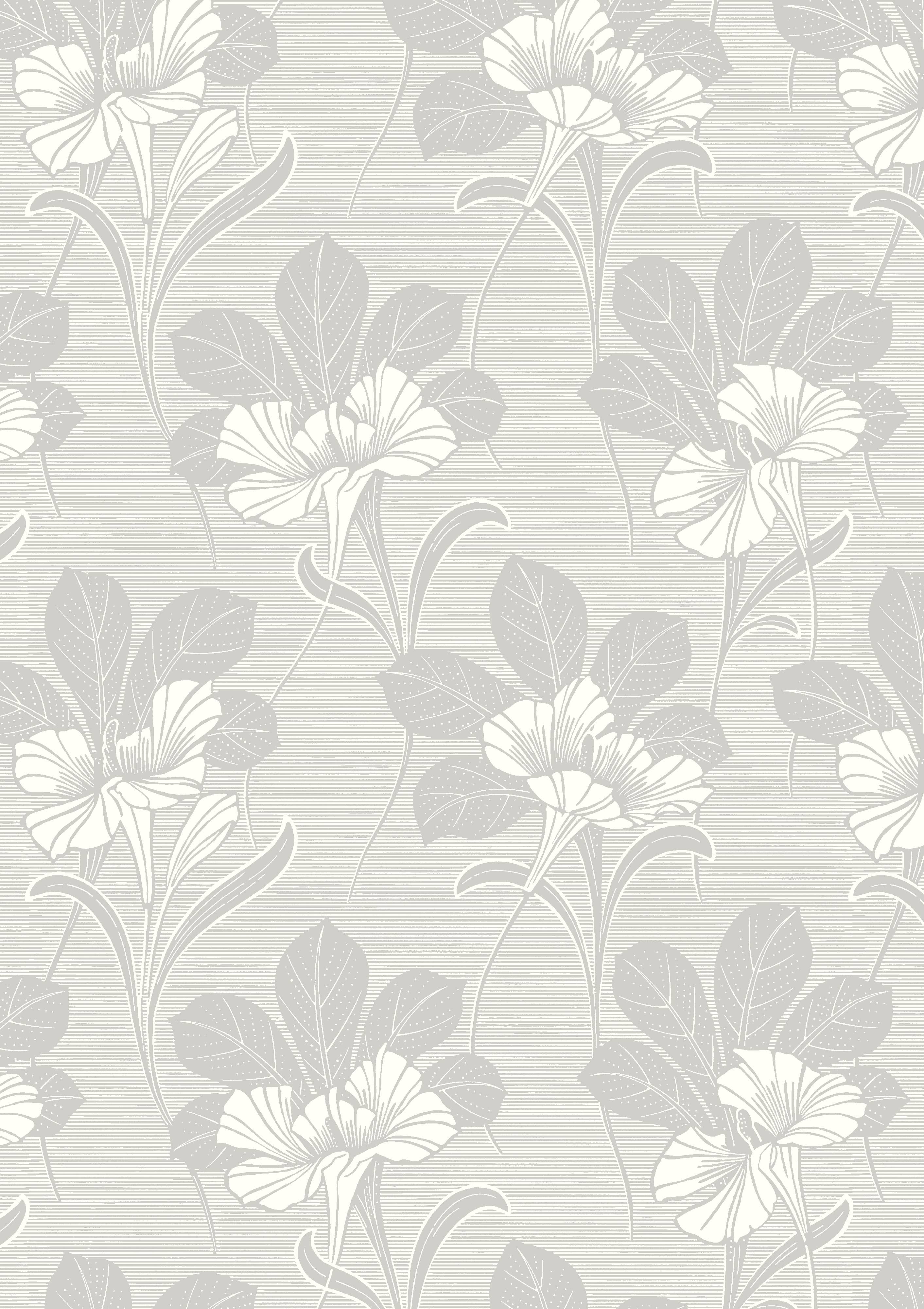 Tapet Vilhelmina grå bestiller du på varenr. 1063214-01-0. Tapetet leveres i rulle med længde 10,05 m og bredde 53 cm.