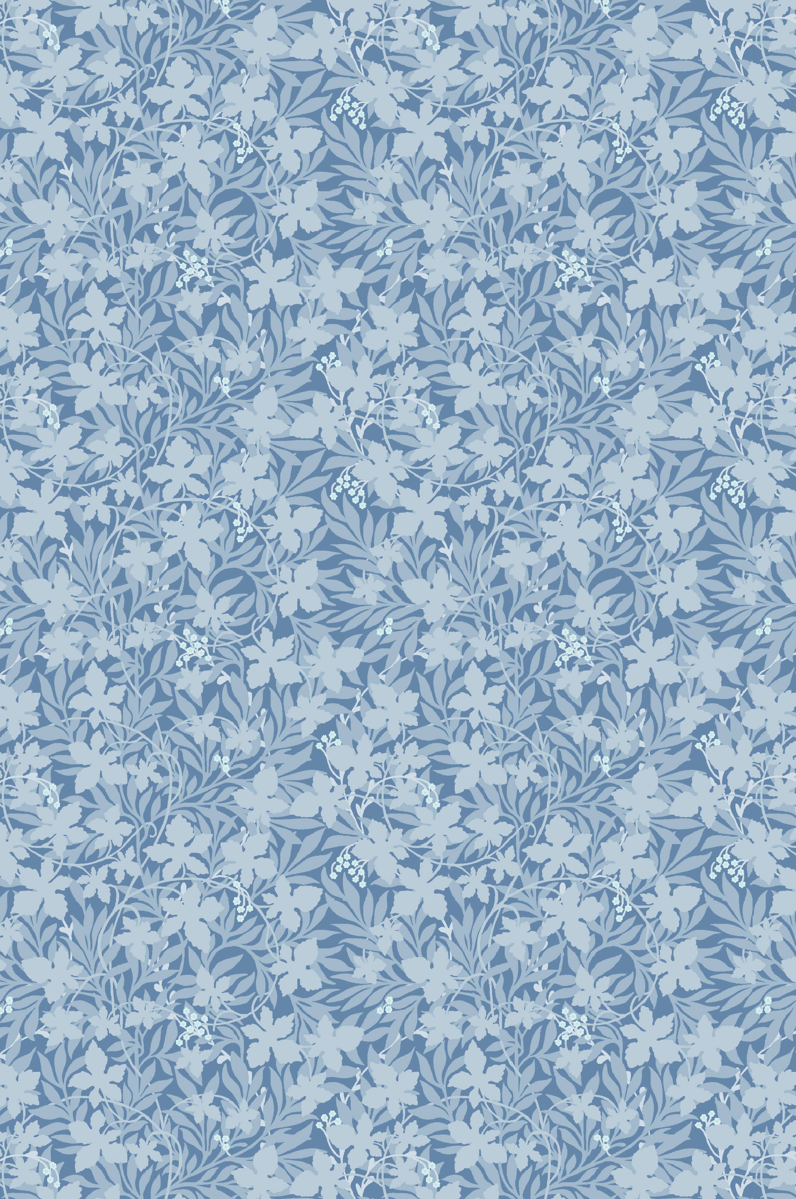 Tapetprøve til tapet Vinbärsblad, farve blå.Mål på denne prøve er ca. 210 x 297 mm (svarer til en A4-side).